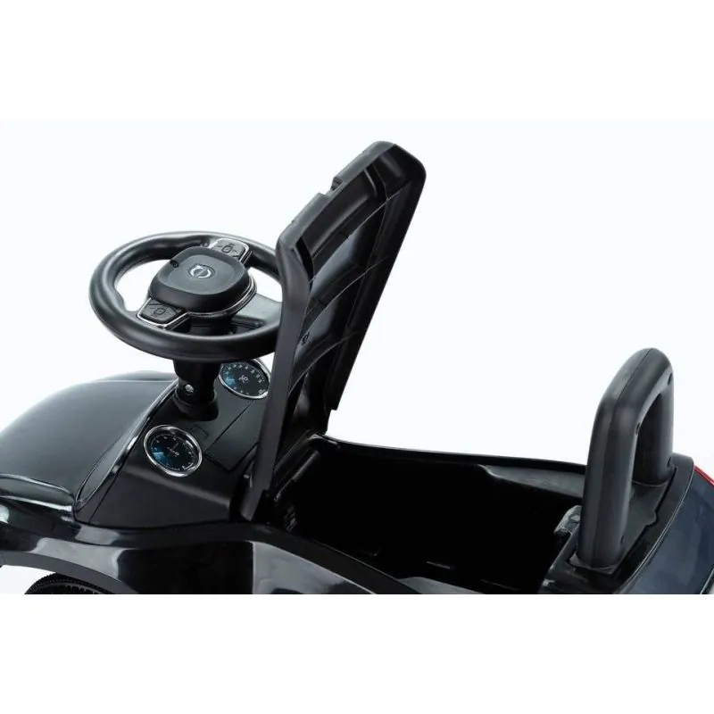 Melns stumjams auto. Šis modelis izgatavots no augstas kvalitātes plastmasas. Ar paceļamu sēdekli un 6 dažādām skaņām.