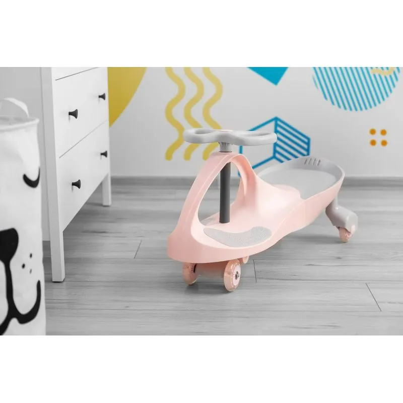 Piemērots lietošanai ārā un mājās;Kustas ar abām bērna rokām un līdzsvaro ķermeni;Aizmugurējie riteņi ir platāki, tāpēc aizsargā pret apgāšanos;Viegls un izturīgs dizains;Gēla riteņi, kas neskrāpē grīdu;Braucot lielākā ātrumā, riteņi spīd;Iespēja braukt uz priekšu un atpakaļ;Ērts, neslīdošs sēdeklis;Vieta kājiņām neslīdoša;Ērts, ergonomisks stūris;