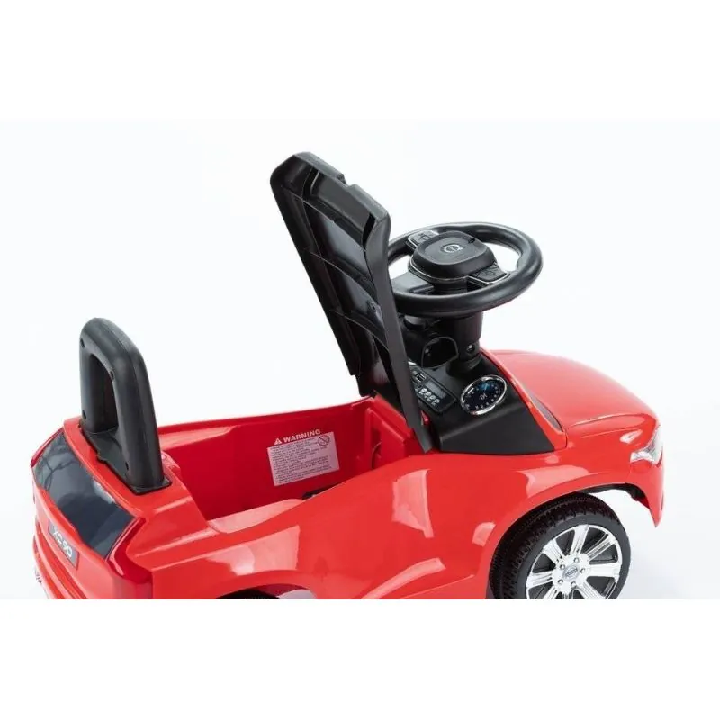 Droša, izturīga un kvalitatīva mašīnīte ar trim pogām, kuras nospiežot mašīnīte izdos skaņas.Šai mašīnītei ir aizsardzība pret sānu un atpakaļejošu apgāšanos, kājiņu paliktņi un rokturis mašīnītes stumšanai.Šos piederumus varēs noņemt, kad bērns vēlēsies braukt ar mašīnīti pats.Rotaļlieta ir droša un kvalitatīva.Veicina mazuli kustēties.Augsts atzveltne bērnam nodrošina ērtu un drošu stāvokli.Rotaļlietu uzglabāšanas kaste.Buferi, kāju balstu un stumšanas rokturi var noņemt;Izturīga konstrukcija nodrošina ilgu braukšanu;Var izmantot gan telpās, gan ārā;"Mini SD" karšu lasītājs;AUX un USB savienojumi;Izmēri ar rokturi: 81 x 43 x 85 cm;Izmēri bez roktura: 61 x 30 x 38 cm;Augstums no zemes līdz sēdeklim: 23 cm;Augstums no kāju balsta līdz sēdeklim: 15 cm;Sēdekļa izmēri: 21 x 25 cm;Roktura izmēri: 15 x 12 cm;Riteņa diametrs: 14,5 cm;Svars: 5 kg;Maksimālā slodze: 23 kg;Ieteicamais vecums: 1 +;Krāsa: sarkana.