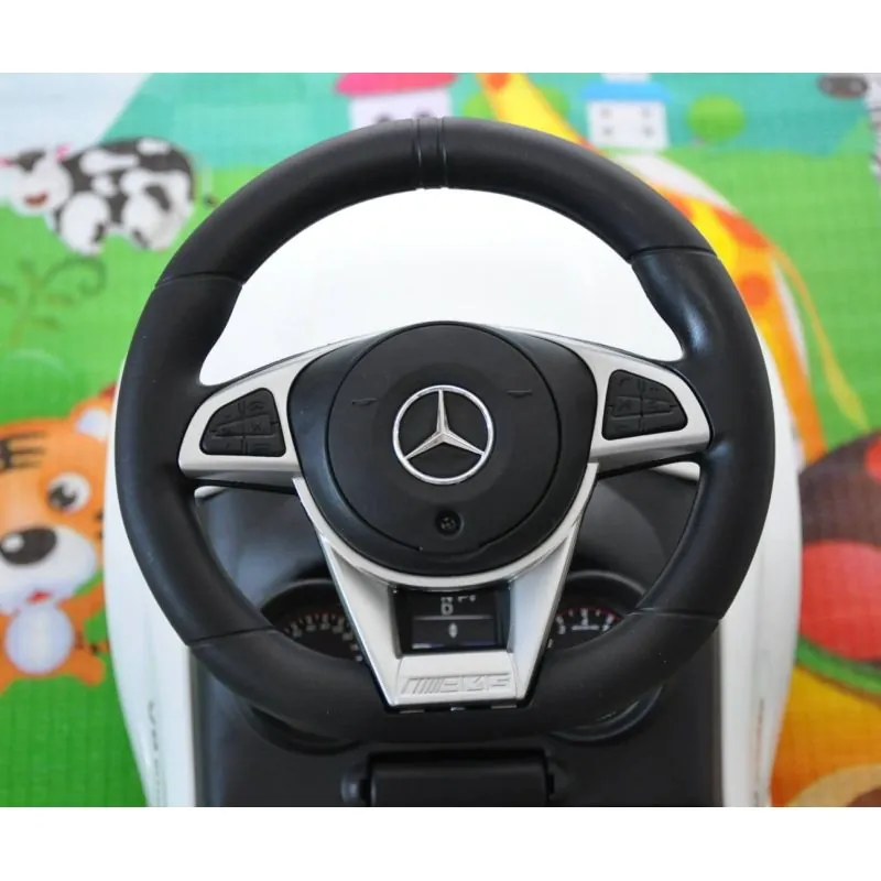 Trīs spieķu stūre ar Mercedes logotipu.Panelis ar skaņas signālu un jautrām melodijām.Glabāšanas kaste zem sēdekļa.Ērts un elegants sēdeklis ar atzveltni.Sēdeklis ar rakstu, kas imitē stepētu ādu.Metāla riteņu asis.Mūsdienīgs izskats.Transportlīdzekļa apgāšanās aizsardzība.Izgatavots no bērniem drošiem materiāliem.Maksimālā slodze - 25 kg.Riteņa diametrs-14 cm.CE drošības sertifikātsBarošana: 2 AA baterijas (nav iekļautas komplektā)Vecuma diapazons 12-36 mēn.