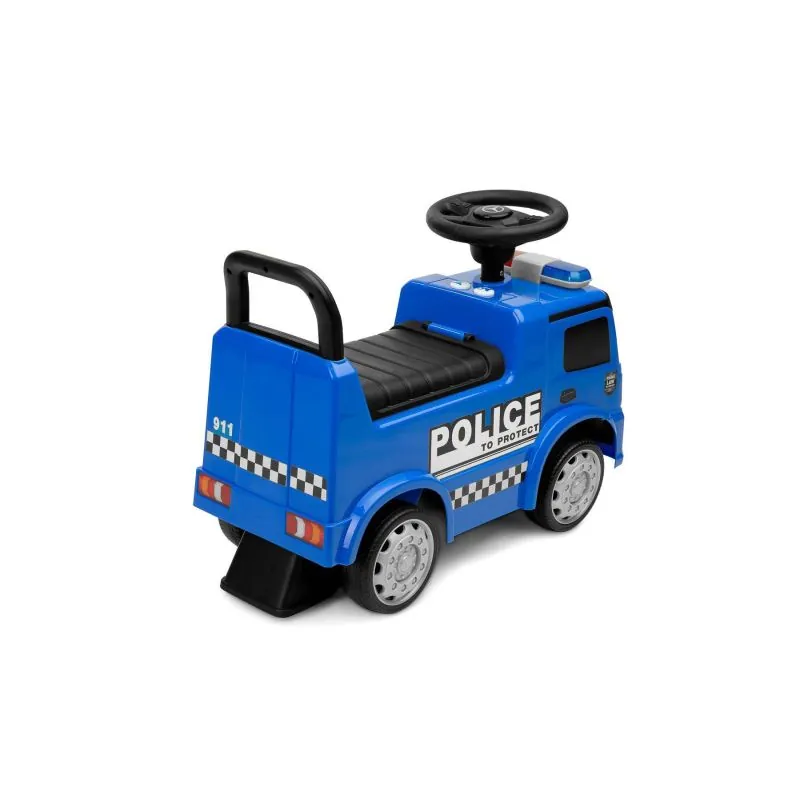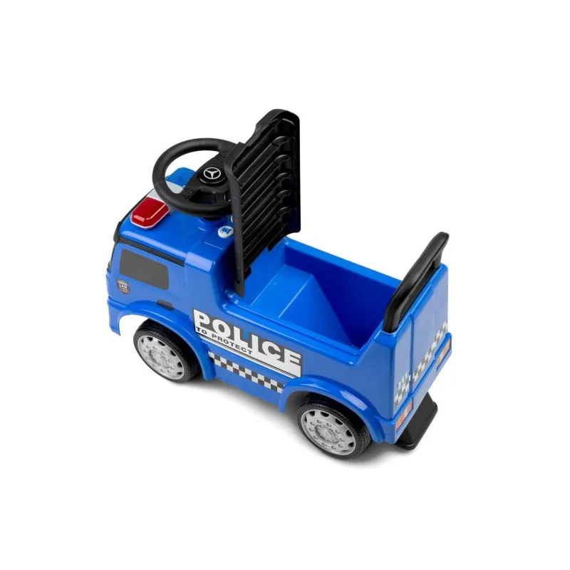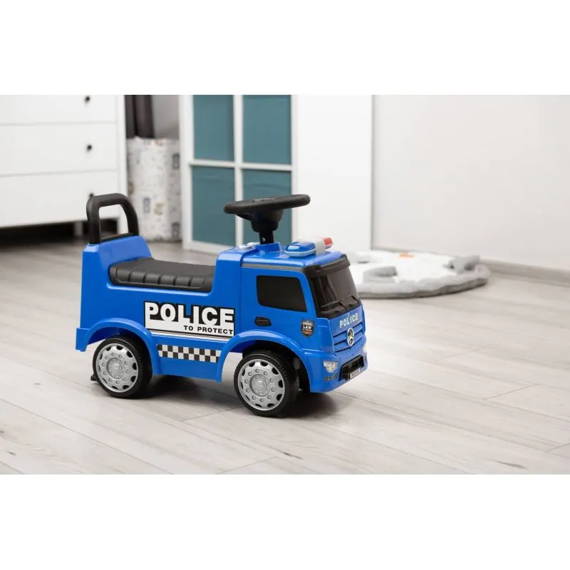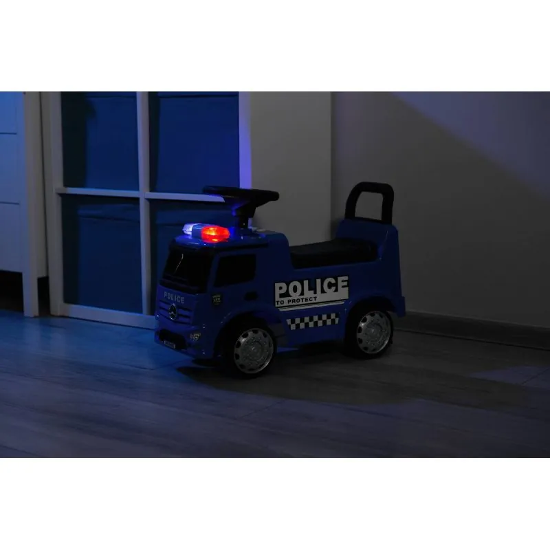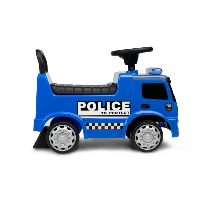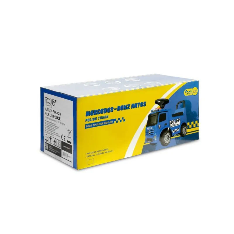 Automašīna „Toyz Police“ izgatavota saskaņā ar „Mercedes“ zīmola licenci.Automašīna izgatavota no augstas kvalitātes plastmasas. Zem ērtā sēdekļa ir rotaļlietu nodalījums. Braucamā automašīna ir aizsargāta pret apgāšanos uz aizmuguri.Unikāls izskats, pateicoties Mercedes licencei.Stūre ar skaļruni.Skaņas un gaismas efekti tiek aktivizēti ar pogām.Plaša glabātuve zem sēdekļa.Pagriežami priekšējie riteņi.Aizsardzība pret apgāšanos.