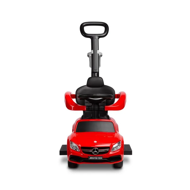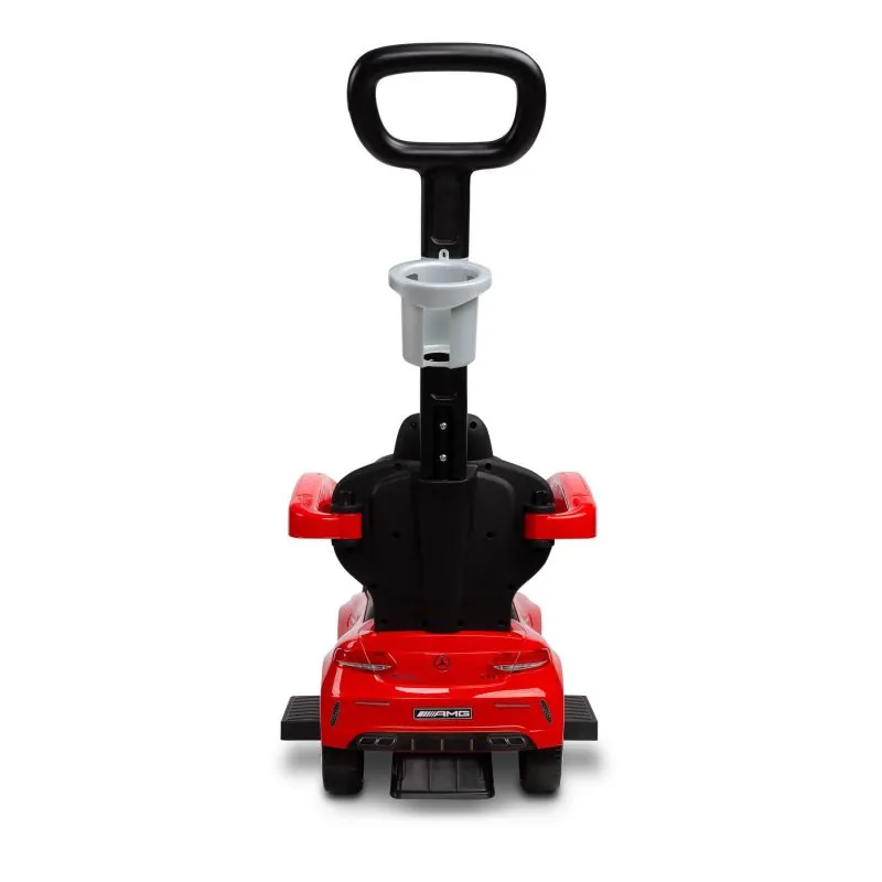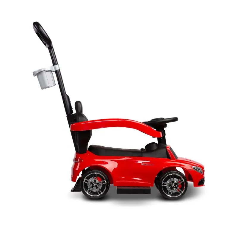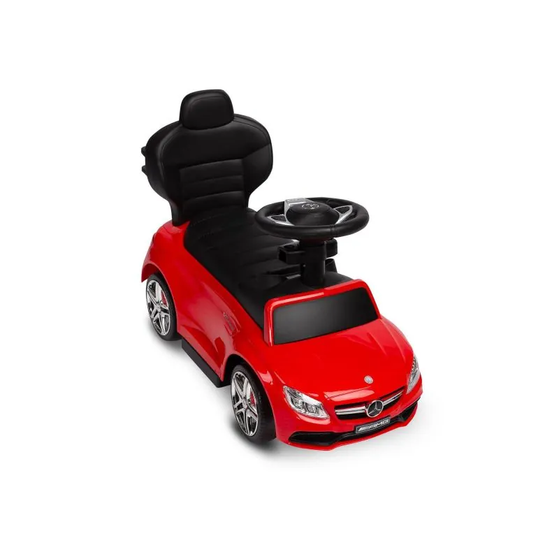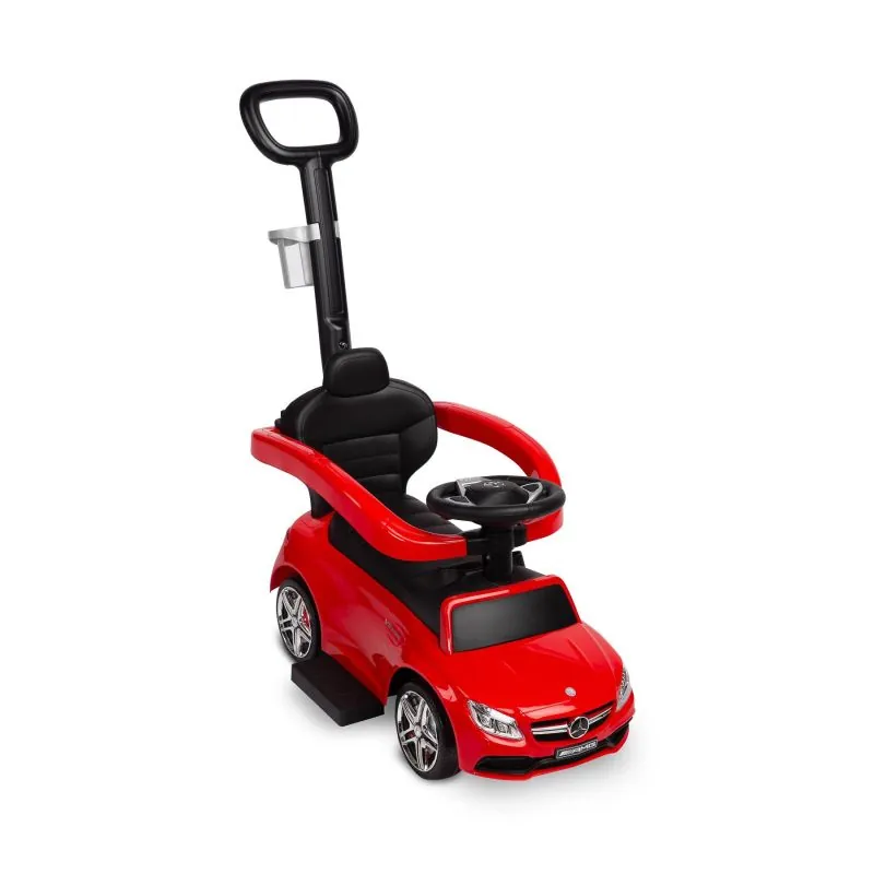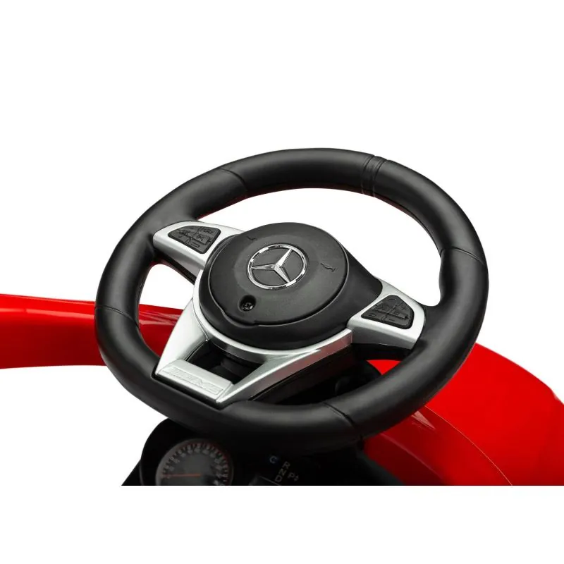 Priekšējie torsionālie riteņi, vadāmi ar rokturi.Trīs spieķu stūre ar Mercedes logotipu.Izvelkamas kāju balsti, kuras var jebkurā laikā salocīt vai izplest.Kaste zem sēdekļa.Ērts un elegants sēdeklis ar atzveltni.Metāla riteņu asis.Noņemami aizsargmargi un atzveltne.Aizsardzība pret transportlīdzekļa apgāšanos.Pudeles/krūzes turētājs.Interaktīvs stūre (3 melodijas un skaņas signāls).Vecums 12-36 mēneši.Riteņa diametrs - 14 cm.CE drošības sertifikāts.Barošana: 2 AA baterijas (nav iekļautas komplektā).