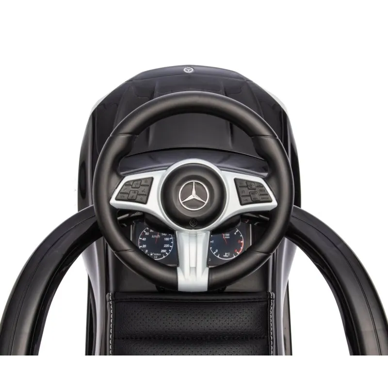Trīs spieķu stūres rats ar Mercedes logotipu, ar skaņas signālu un jautrām melodijām;