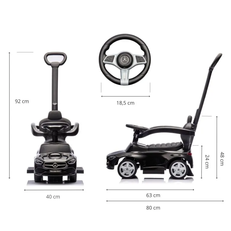 Milly Mally bīdāms auto ar stumšanas rokturi MERCEDES C-Class Deluxe, Melns