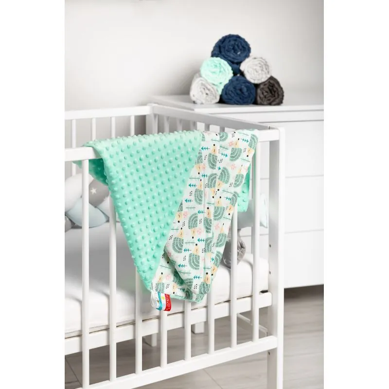 Krāsains, mīksts un maigs divpusējs Minky pleduks, piemērots ratiņiem, šūpulim un gultiņai.