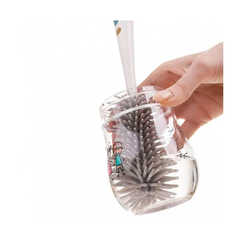 Pudeļu tīrīšanas birste ar mīkstiem silikona sariem nodrošina, ka pudeles un trauki tiek tīrīti tīri un nesaskrāpējot virsmas.Pareizi profilēts uzgalis sasniedz grūti pieejamas vietas, un ērts neslīdošs rokturis nodrošina stabilu saķeri.Ir spirālveida uzgalis knupīšu tīrīšanai.Birste ir ar statīvu ērtai glabāšanai vertikālā stāvoklī.Izgatavots no izturīgiem un drošiem materiāliem, bez bisfenola A (0% BPA)