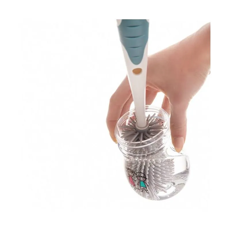 Akuku pudelīšu, krūzīšu un knupīšu silikona birste ar birstīti, pelēks/tirkīzs, A0511
