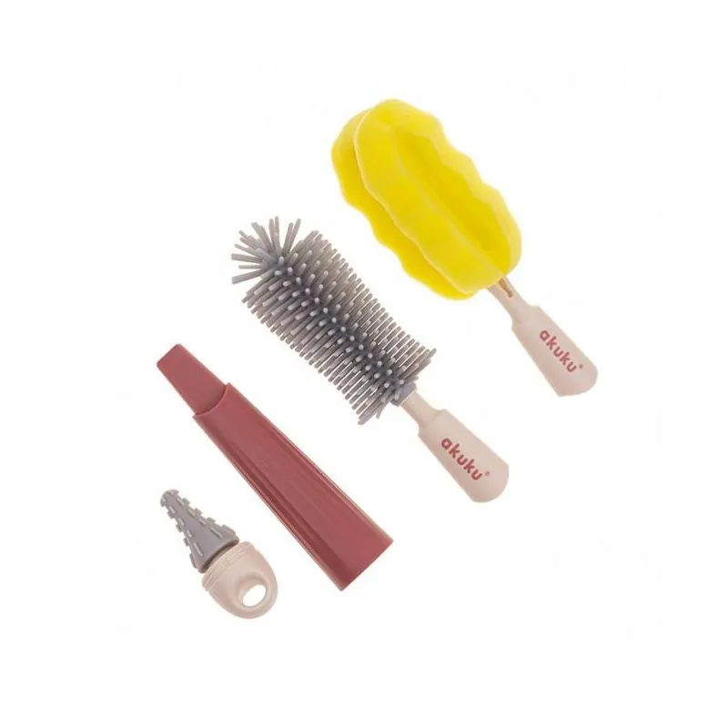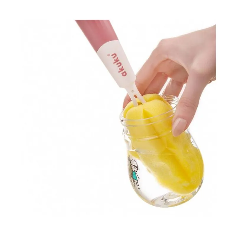 Akuku pudelīšu, krūzīšu un knupīšu silikona birste ar sūkli, bēšs/rozā, A0512