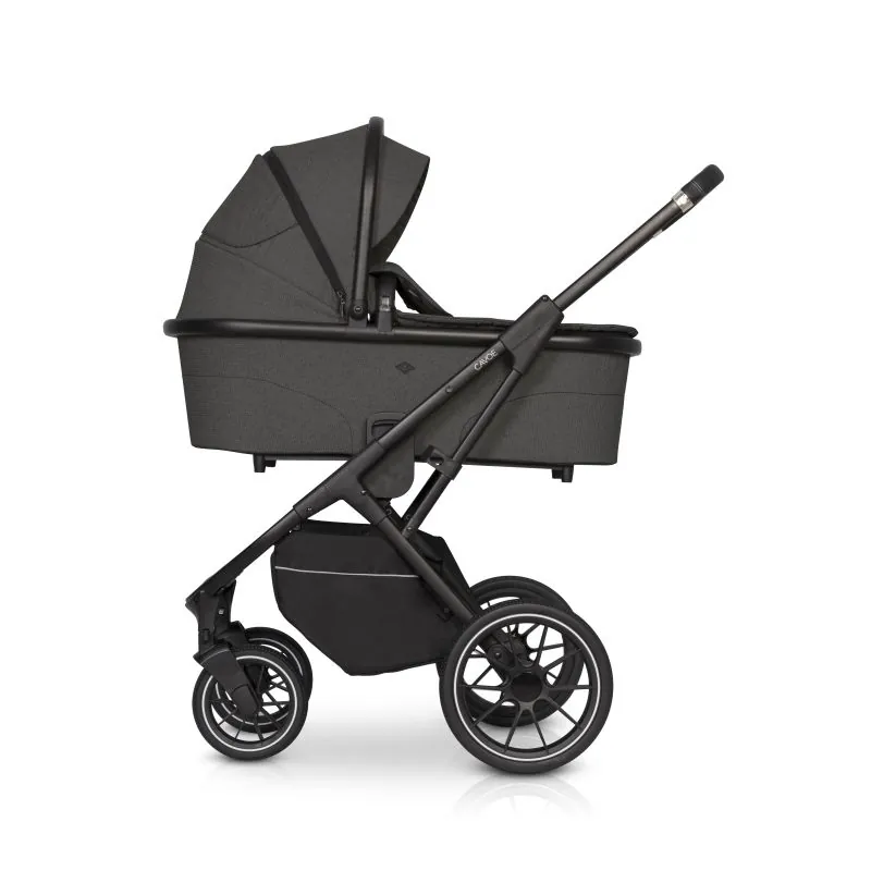 Liels šūpulis (iekšējais garums 79 cm)Šūpulis ar atsevišķu lietus aizsardzību,Ekoloģiskas ādas pārklāta nesšanas rokturis,Saules aizsargs ar papildu noņemamu daļu,Apakšā plastmasas kājiņas un ventilācijas panelis.