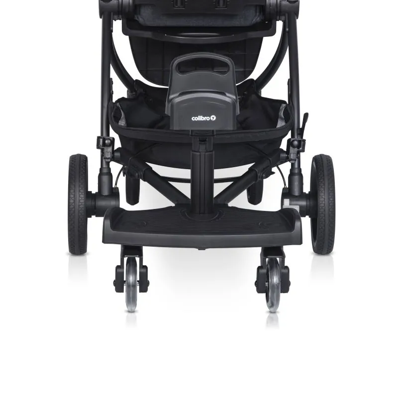 Colibro pagarinājumu var izmantot kā platformu stāvošam bērnam vai kā platformu ar sēdekli, kas ļauj pārvadāt bērnu sēdus stāvoklī. Sēdeklim ir ērta noliekšanas uz priekšu funkcija, lai to nevajadzētu pilnībā noņemt, ja bērns vēlas piecelties un turpināt braukt stāvus. Sēdeklim ir ērts mīksts spilvens, kas pildīts ar speciālām putām, nodrošinot komfortu sēdošam bērnam.Montāžas sistēma ļauj savienot ar lielāko daļu tirgū esošo ratiņu (ne vienmēr ar Colibro ratiņiem). Rokturus var regulēt 2 plaknēs: teleskopiskā garuma un horizontālā regulēšana. Teleskopiskā garuma regulēšana ļauj pietuvināt pakāpienu ratiņu konstrukcijai.Horizontālā regulēšana palielina vai samazina sviras leņķi, kas ļauj pielāgot ratiņu platumam. Turklāt pagarinājumam ir vertikālā plaknē regulējamas sviras, kas vienlaikus palīdz pareizi izlīdzināt platformu attiecībā pret zemi. Rokturus pie ratiņu konstrukcijas elementiem piestiprina ar speciāliem skavām ar elastīgām regulējama garuma siksnām.Cietās gumijas riteņi ir aprīkoti ar amortizatoru.Riteņi ir grozāmi, tāpēc tie neaizslēgsies, kad pagriežat ratiņus.Piemērots bērniem no 15 mēnešiem līdz 20 kg svara.