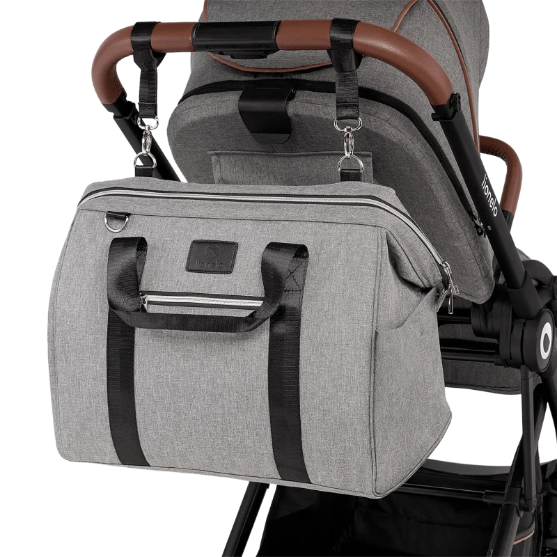 Ļoti ietilpīgs, Mommy Bag tipa, ļauj paņemt visus nepieciešamos priekšmetus pastaigai.