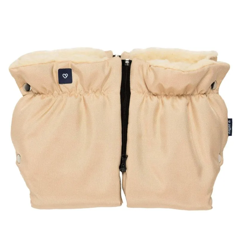 Piestiprināmas pie ratiņu roktura, tāpēc stumjot ratiņus, nesals rokas.Var izmantot kā atsevišķas cimdus vai roku sildītāju. Piemērotas daudzu ratiņu un ragavu rokturiem;Praktiskas, siltas un universālas.Iekšpuse no dabīgas aitas vilnas, kas ir antialerģiska.Sastāvs: