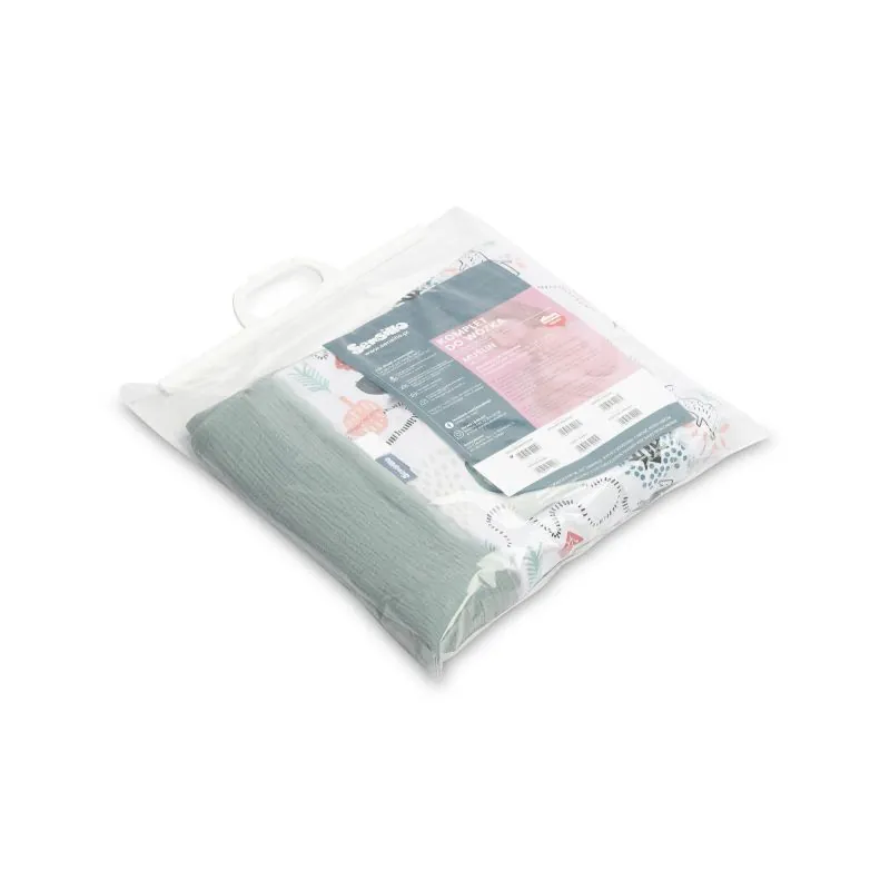 Muslīna un kokvilnas 2 daļu gultas veļas komplekts ratiņiem.