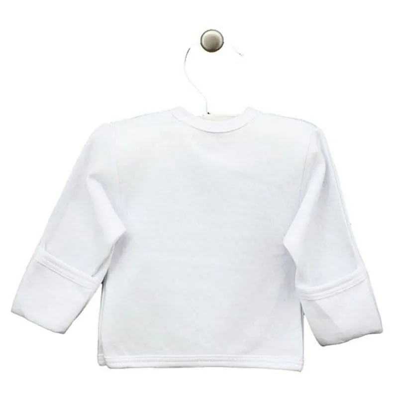 Ar garām piedurknēm;Atlokāmi cimdiņi;Aizverams ar spiedpogām; Izgatavots no OEKOTEX sertificētas un mīkstas 100% kokvilnas;Krāsa: balta;Ražots Lietuvā;