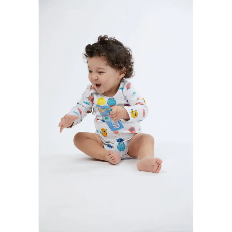 Smilšu tērps mīļam Monstriņam no mīkstas, kvalitatīvas kokvilnas.Viegli aizpogājams pie kājstarpes un pleciņa ar spiedpogām, ērti ātri novilkt un pārģērbt mazuli. Papildu divas spiedpogas pie kājstarpes ļaus ilgāk valkāt smilšu tērpu.Izmēri 50/56 ir ar apvērstām šuvēm – tas palīdzēs aizsargāt jūsu mazuļa jutīgo ādu. Tāpat jūsu un mazuļa ērtībai ir sānu (kimono stila) aizdare – tas ir lielisks risinājums jaundzimušajiem.Izmēri 50/56/62 ir ar atlokāmām piedurknēm – cimdiņiem.Izmēri 62/68/74/80 ir ar standarta iekšējām šuvēm, aizpogājami ar vienu spiedpogu pie kakliņa (tāpēc lieliski pieguļ), ar divu līmeņu spiedpogām apakšā – t.i., kad mazulis paaugsies. Jums vairs nebūs jāmeklē lielāks smilšu tērps – pietiks tikai pārspiest spiedpogas.