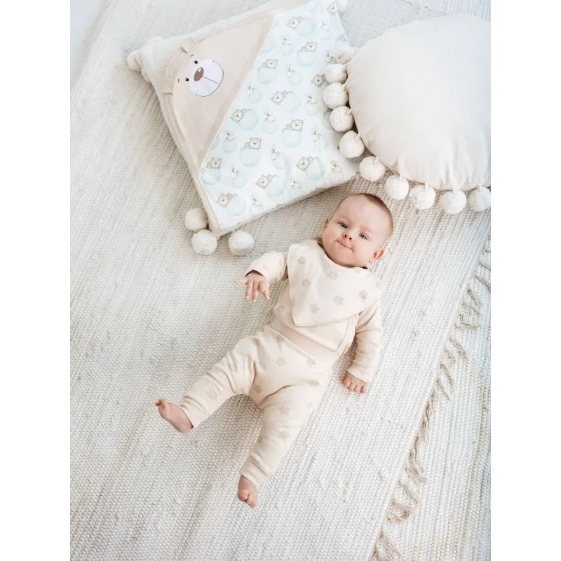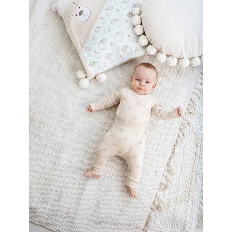 Spēlīgs un stilīgs zīdaiņu rāpulis "Bear and bunny".Maigi pasteļtoņi 50/56/62 izmēri Jūsu un mazuļa ērtībai ir sānu (kimono stila) aizdare – tas ir lielisks risinājums jaundzimušajiem.Šiem izmēriem ir arī atliekamas piedurknes – cimdiņi.Var iegādāties šīs kolekcijas: rāpuli, biksītes.Izgatavots no kvalitatīva, mīksta un maiga trikotāžas, kas sertificēts ar Oeko tex standard 100 standard 100.