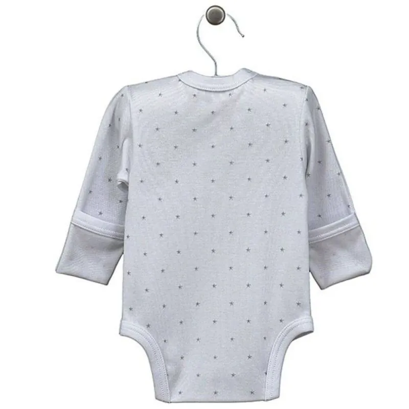 Ar garām piedurknēm;Aizdarāms ar spiedpogām sānos un starp kājām;Izgatavots no OEKOTEX sertificētas un mīkstas 100% kokvilnasKrāsa: balta;Ražots Lietuvā;