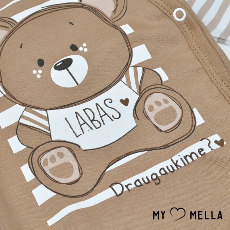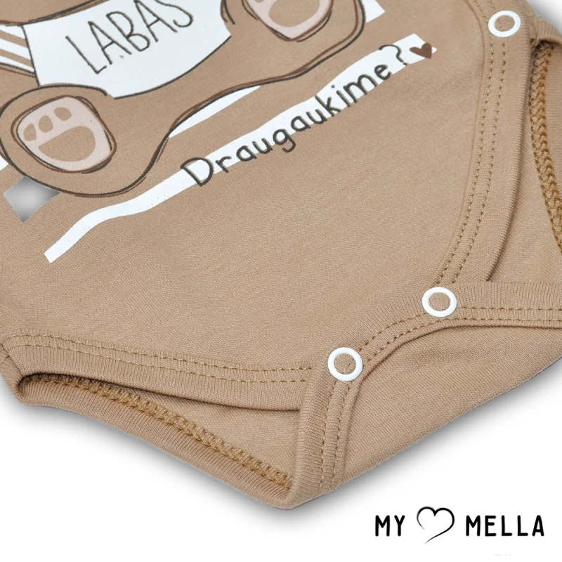 Spēlīgs un stilīgs bodijs zīdainim "Labdien".Saskaņots moderns dizains un tradīciju praktiskums.Īpaši mīksts kokvilnas bodijs, piemērots kā virsdrēbes vai miega apģērbs.Jūsu un mazuļa ērtībai ir sānu (kimono stila) aizdare – tas ir lielisks risinājums jaundzimušajiem.Var iegādāties šīs kolekcijas: kombinezonu, biksītes.Mazgāt 40 grādu temperatūrā.Izveidots Lietuvā!