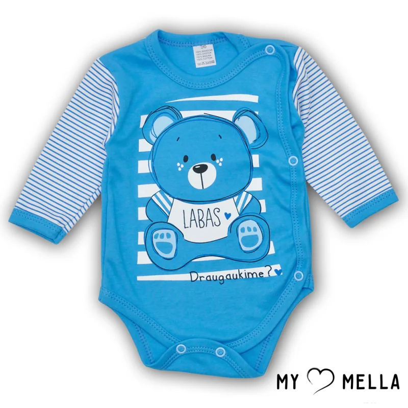 Spēlīgs un stilīgs zīdaiņu bodijs "Labas".Saskaņots moderns dizains un tradīciju praktiskums.Īpaši mīksts kokvilnas bodijs, piemērots kā virsdrēbes vai miega apģērbs.Jūsu un zīdaiņa ērtībai ir sānu (kimono stila) aizdare – lielisks risinājums jaundzimušajiem.Pieejams šīs kolekcijas: kombinezons, bikses.Mazgāt 40 grādu temperatūrā.Izveidots Lietuvā!