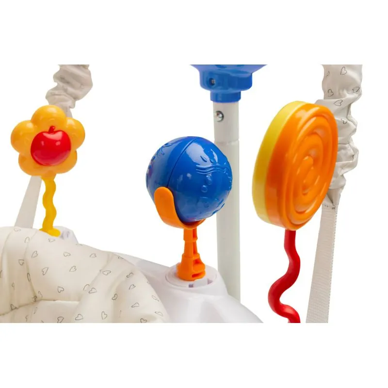 Šūpošanas funkcija.3 augstuma regulēšanas līmeņi.Pievilcīgas krāsas.Interaktīvs priekšējais panelis, ko darbina baterijas.Daudz rotaļlietu (grabuli, pogas).Vienkārša montāža.Sēdeklis griežas 360 grādos.Piemērots bērniem līdz 6 mēnešiem līdz maks. 12 kg