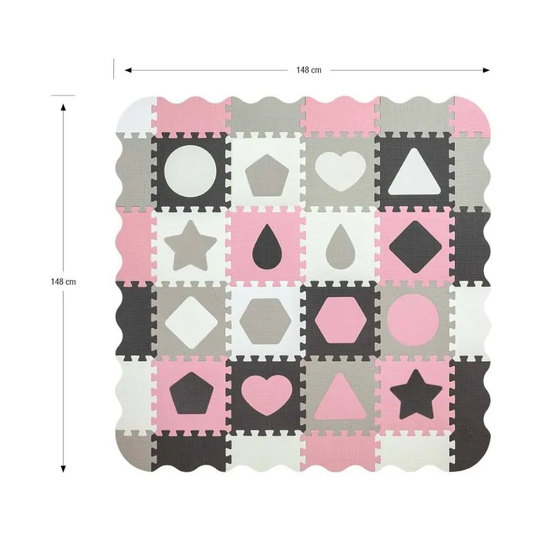 Milly Mally puzle/salikšanas paklājiņš Jolly 4x4 Shapes - Pink Grey