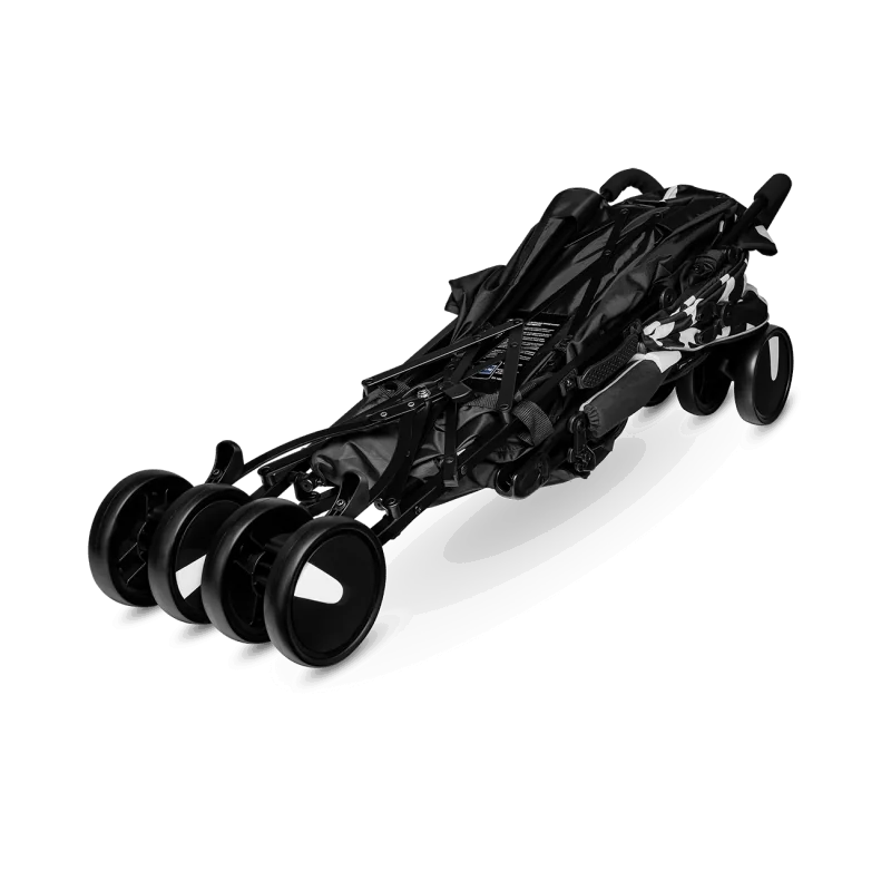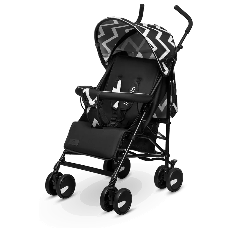 Ļoti izturīga, viegla konstrukcija – tikai 7 kg.Komplektā ir moskītu tīkls, kāju pārsegs.Atzveltnes un kāju balstu regulēšana.Liels iepirkumu grozs.Ātri un viegli salokāma sistēma.Aizmugurējā riteņa bremze.Ērts nesšanas rokturis.