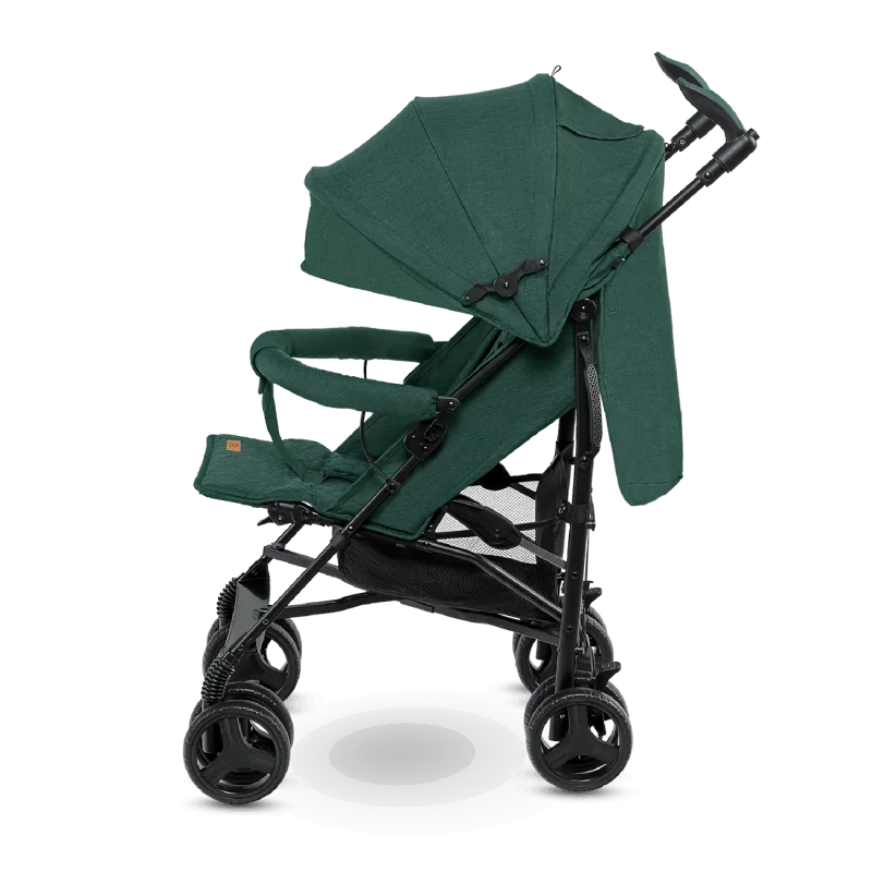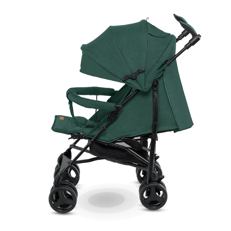 360 grādu rotējoši rokturiAtzveltnes regulēšana guļus pozīcijāĻoti viegla konstrukcija - tikai 7 kgTīkls pret odiem, kāju pārsegs5 punktu jostasLiels iepirkumu grozsAizmugurējā riteņa bremzeĀtri un viegli saliekama sistēmaĒrts nēsāšanas rokturisMūsdienīgs dizains