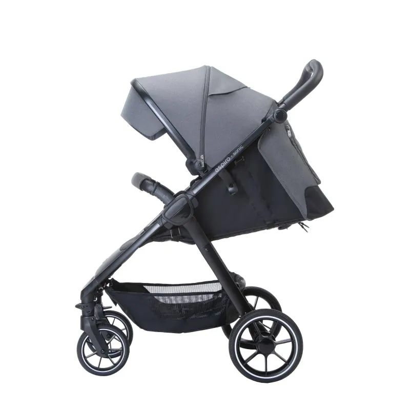 Paredzēts bērniem līdz 22 kilogramiem;4 lieli želejas riteņi;Izturīgs melnas krāsas alumīnija rāmis;360 grādu rotējoši priekšējie riteņi, tāpēc ļoti ērti manevrēt;Braucot pa nelīdzenu ceļu, priekšējos riteņus var fiksēt braukšanai taisni;Kompakti salokāms rāmis aizņem ļoti maz vietas;Rāmis salokās kopā ar sporta daļu;Sporta daļas aizmugurē ir kabatiņa sīkumiem;Audumi UPF50+;Regulējama muguras pozīcija;Ir guļus pozīcija;Silts kāju pārsegs;Regulējams kāju balsta augstums;Regulējams eko ādas roktura augstums;Viegls noņemams un uzliekams eko ādas buferis;Ar rāvējslēdzēja palīdzību, jumtiņš pagarinās, tādējādi aizsargājot no saules un vēja, vidū integrēts tīkliņš;Atverams lodziņš, lai vecāki varētu redzēt bērnu;Polsterētas 5 punktu drošības jostas;Atbilst Eiropas Savienības standartam EN 1888;