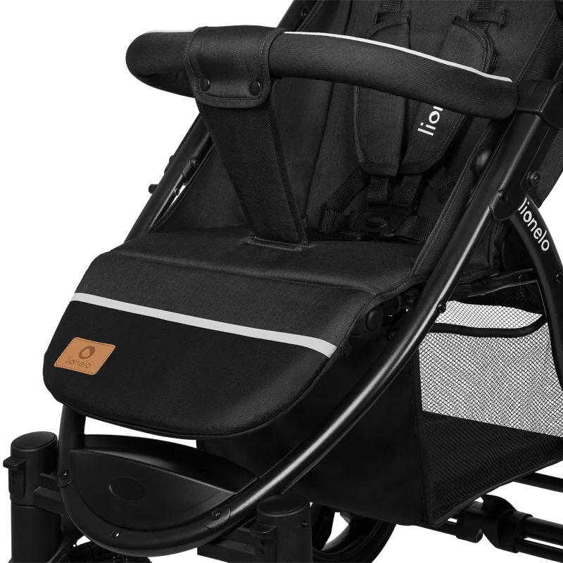 Piemērots bērniem līdz 22 kgSēdeklis salokās plakaniLiela virsma bērnam, nolaižot atzveltni: 90 cmTehniskās apkopes neprasoši PU riteņiĻoti ērta amortizācija9 soļu stumšanas roktura regulēšanaŪdensnecaurlaidīgs XXL jumtiņš ar UPF 50+ filtruMīksts redukcijas iekšzolePlašs iepirkumu grozs ar vieglu piekļuviKāju balsts apdarināts ar eko āduGaismu atstarojoši elementi uz kāju balsta, buomelio un jumtiņa