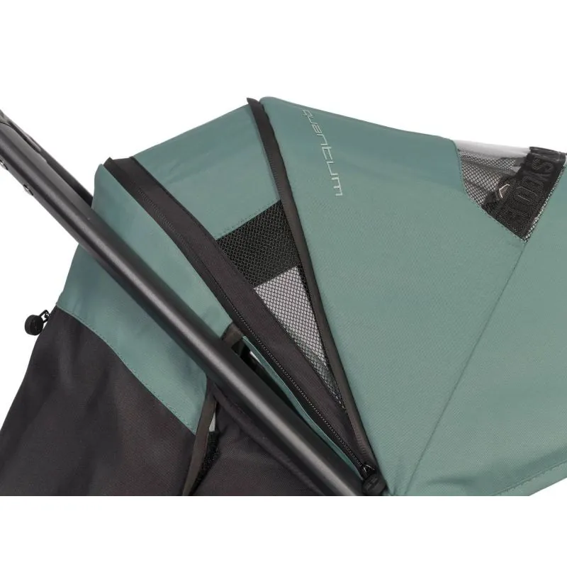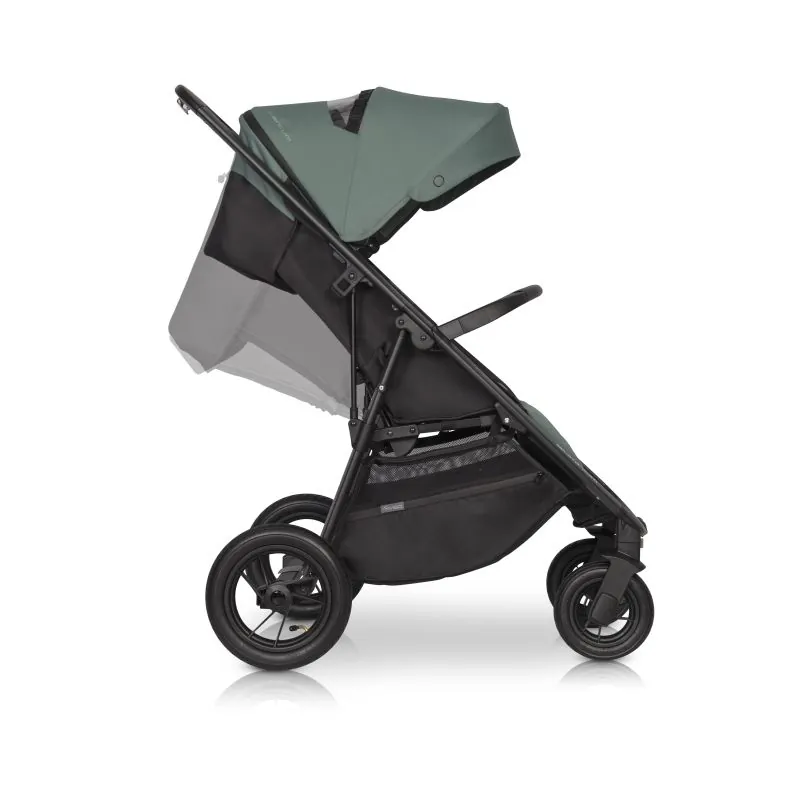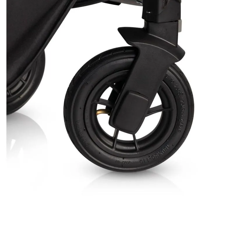Paredzēts bērniem līdz 22 kilogramiem;4 piepūšami riteņi;Izturīgs alumīnija, melnas krāsas rāmis;360 grādu rotējoši priekšējie riteņi, tāpēc ļoti ērti manevrēt;Braucot pa nelīdzenu ceļu, priekšējos riteņus var fiksēt braukšanai taisni;Kompakti salokāms rāmis aizņem ļoti maz vietas;Rāmis salokās kopā ar sporta daļu, kad sporta daļa ir vērsta uz ceļu;Sporta daļas aizmugurē ir kabatiņa sīkumiem;4 pozīcijās regulējama muguras pozīcijaIr guļus pozīcija;Silts kāju pārsegs;Regulējams kāju balsta augstums;Viegls noņemams un uzliekams eko ādas buferis;Ar rāvējslēdzēja palīdzību, jumtiņš pagarinās, tādējādi aizsargājot no saules un vēja, vidū integrēts tīkls;Atverams lodziņš, lai vecāki varētu redzēt bērnu;Polsterētas 5 punktu drošības jostas;Komplektā ir aizsargs pret lietu;Atbilst Eiropas Savienības standartam EN 1888;