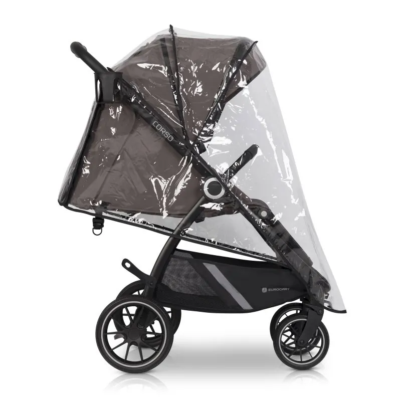 lietus pārsegs ar ventilācijas atverēm, kas pārklāj visu ratiņu apdari,