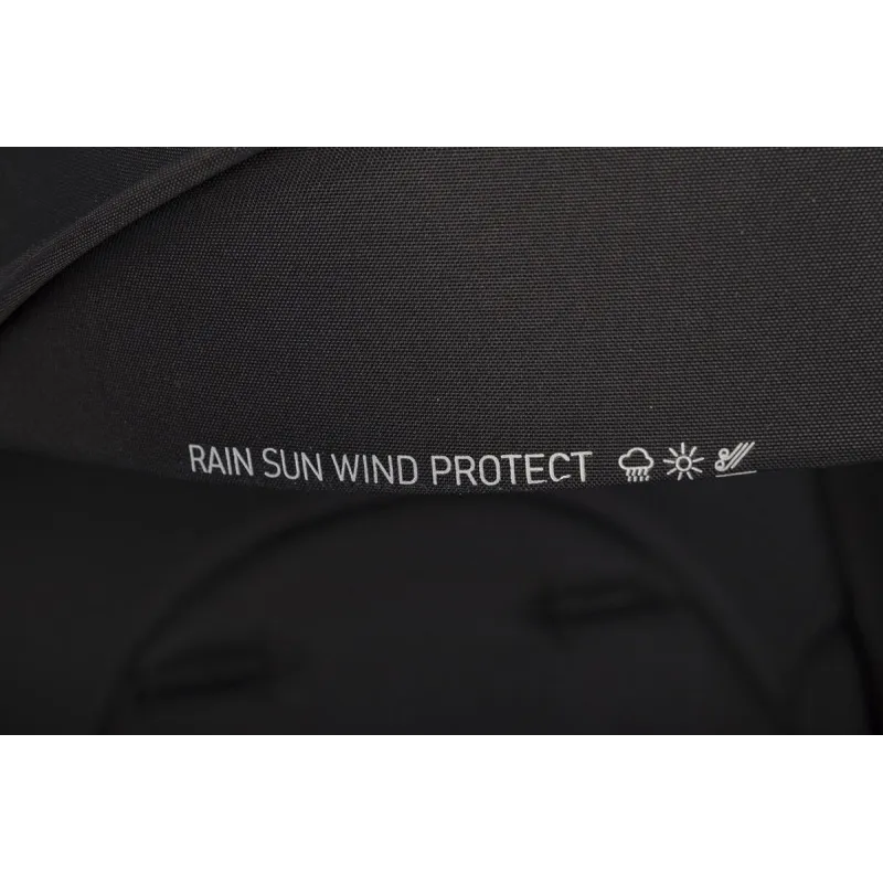 Ratiņi ir aprīkoti ar ūdensnecaurlaidīgu XXL jumtiņu ar UPF50+ filtru, kas aizsargā bērnu mainīgos laika apstākļos.