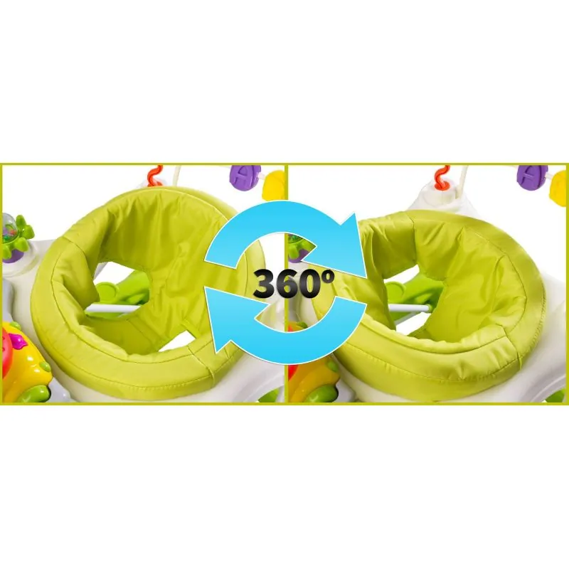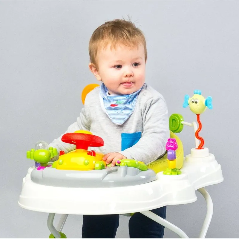 Paredzēts bērniem no 6 mēnešiemĻoti kompakta salocīšana3 regulējami augstuma līmeņiNoņemams panelis ar rotaļlietāmIr gaismiņas, mūzika, rotaļlietasVienkārša lietošanaAizsardzība pret slīdēšanu neļaus staigulim noslīdēt no kāpnēmPriekšējie riteņi kontrolē staiguļa kustībuMīksts, ērts sēdeklis griežas 360 grādu leņķīSertifikāts EN1273