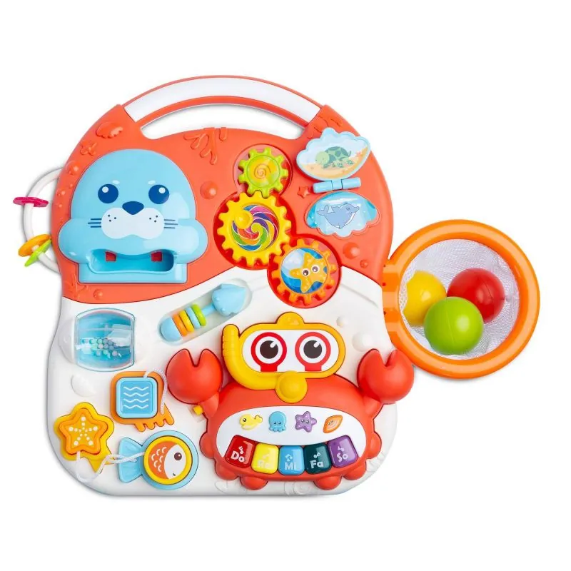 Staigulis Jūsu bērnam, kas palīdzēs piecelties un spert pirmos soļus;Pasteļtoņu staigulis palīdz uzturēt līdzsvaru;Aizmugurējie riteņi ar mīkstu protektoru nodrošina stabilu atbalstu un neatstāj pēdas uz mājas grīdām;Aizmugurējie riteņi ir fiksējami, lai tie negrieztos;Ērts stumšanas rokturis;Ritenis, formas, grozs ar bumbiņām, griežams grabulis - tas viss bērna spēlēm un attīstībai;Ar skaņām un mūziku;Izņemams mini klavieres;Dažādas rotaļlietas;Pārvēršas par galdiņu uz kājiņām;Paredzēts bērniem no 6 līdz 36 mēnešiem;Nepieciešamas AA baterijas (nav iekļautas).Eiropas standarts EN 71, EN 62115;