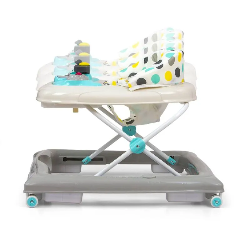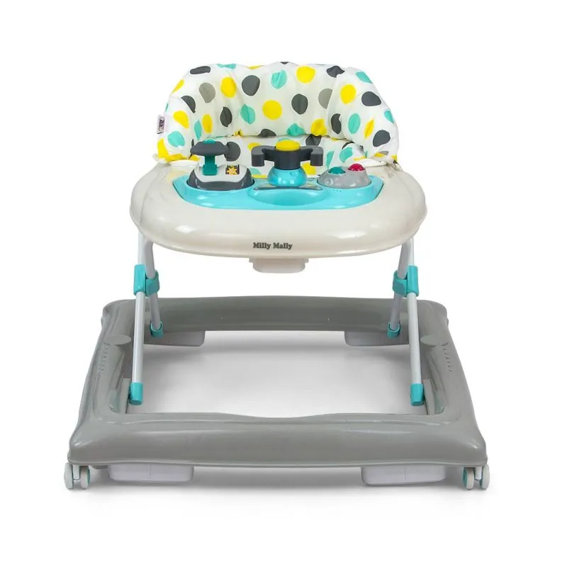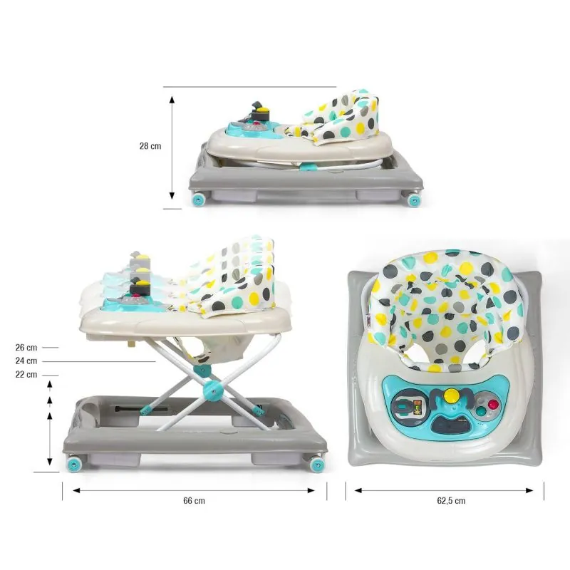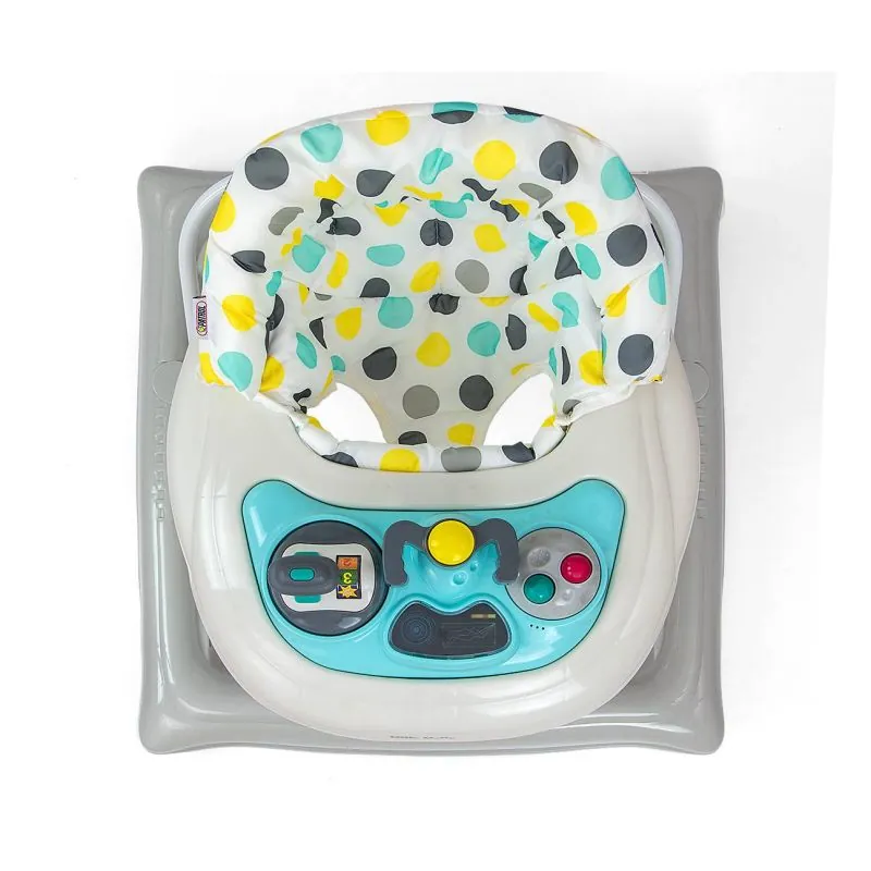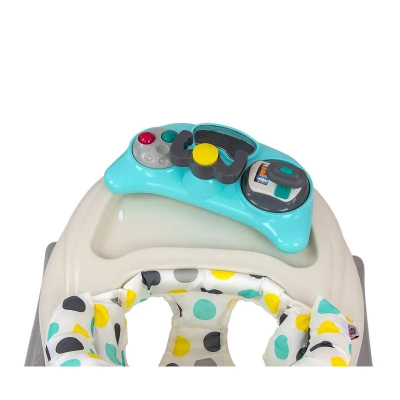 Staigulis PATROL DOTS ir paredzēts aktīviem un ziņkārīgiem bērniem.Četri kvalitatīvi grozāmi riteņi, kas neskrāpē virsmu, pa kuru tie pārvietojas, nodrošina kustības brīvību, astoņi gumijas aizbāžņi aizsargās bērnu no slīdēšanas pa kāpnēm vai citām šķēršļiem.Īpaša konstrukcija ļauj sēdekli regulēt atbilstoši mazuļa augumam, lai kājas varētu viegli pieskarties zemei.3 augstuma pozīcijas, 22, 24, 26 cm (no zemes līdz sēdekļa apakšai)Bērnu izklaidēs dažādas melodijas un gaismas efekti.Viegli tīrāmi materiāli.Ieteicamais bērna vecums no 6 mēnešiem.Ieteicamais bērna svars: līdz 12 kg.