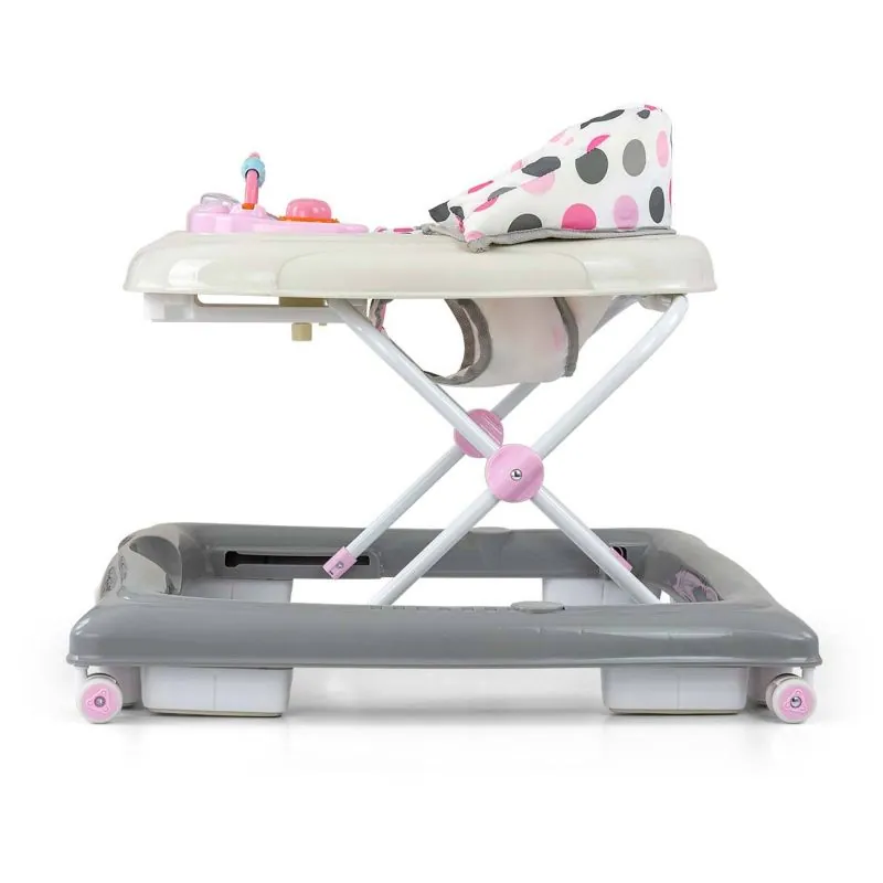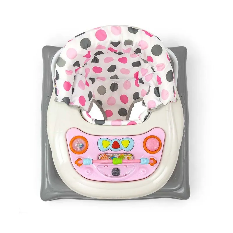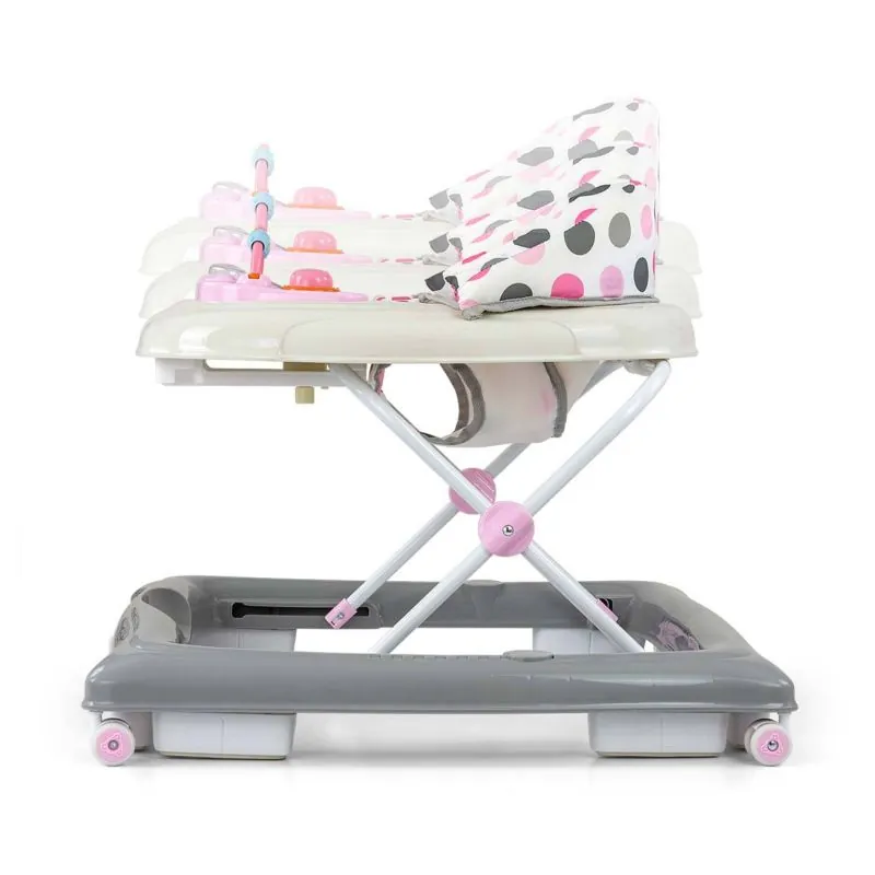 Gājējs PATROL ir paredzēts aktīviem un ziņkārīgiem bērniem.Četri kvalitatīvi grozāmi riteņi, kas neskrāpē virsmu, pa kuru tie pārvietojas, nodrošina kustības brīvību, astoņi gumijas aizbāžņi aizsargās bērnu no slīdēšanas pa kāpnēm vai citām šķēršļiem.Īpaša konstrukcija ļauj sēdekli pielāgot mazuļa augumam, lai kājas varētu viegli pieskarties zemei.3 augstuma pozīcijas, 22, 24, 26 cm (no zemes līdz sēdekļa apakšai).Bērnu izklaidēs dažādas melodijas un gaismas efekti.Viegli tīrāmi materiāli.Ieteicamais bērna vecums no 6 mēnešiem.Ieteicamais bērna svars: līdz 12 kg.