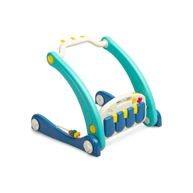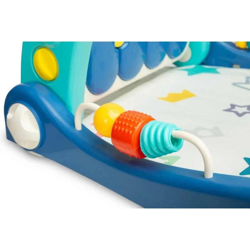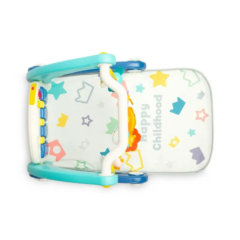 Paklājiņam ir stienis ar piekārtiem dzīvnieku formas grabuļiem un spoguli. Atbrīvojot priekšējos riteņus un noņemot paklājiņu, rotaļlieta pārvēršas par staiguli. Multivides panelis ar lielām pogām un sānos uzstādītām sensoru rotaļlietām palīdzēs bērna attīstībai. Rotaļlieta piemērota bērniem no pirmajiem dzīves mirkļiem.Multivides panelis ar patīkamām melodijām.Palīdz attīstīt bērna koncentrēšanos un uzmanību.
