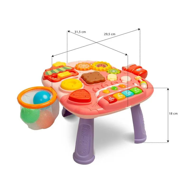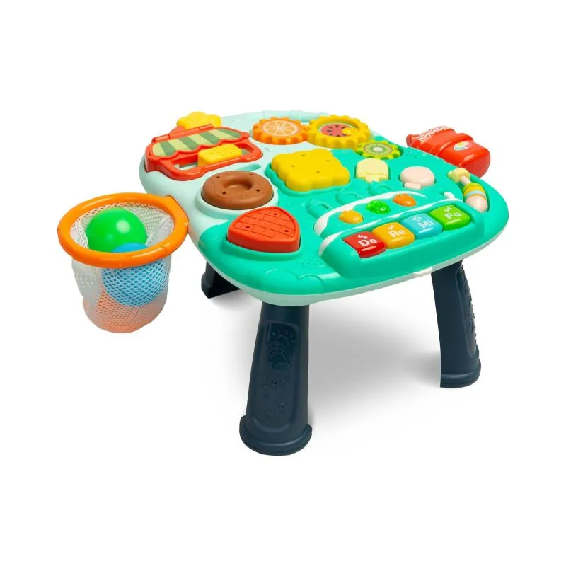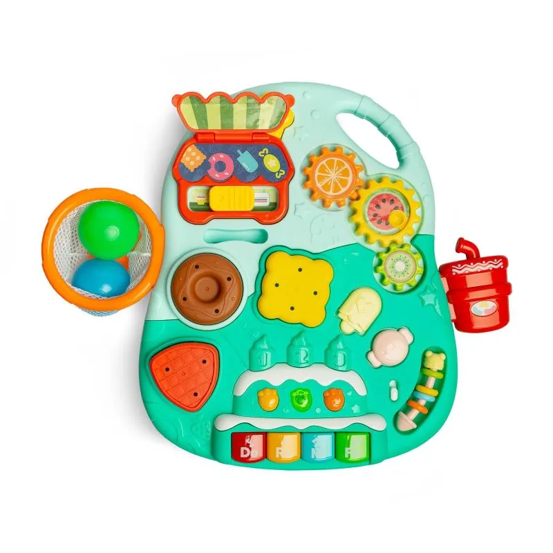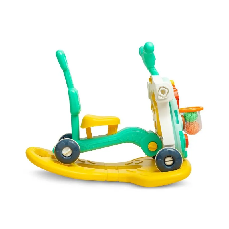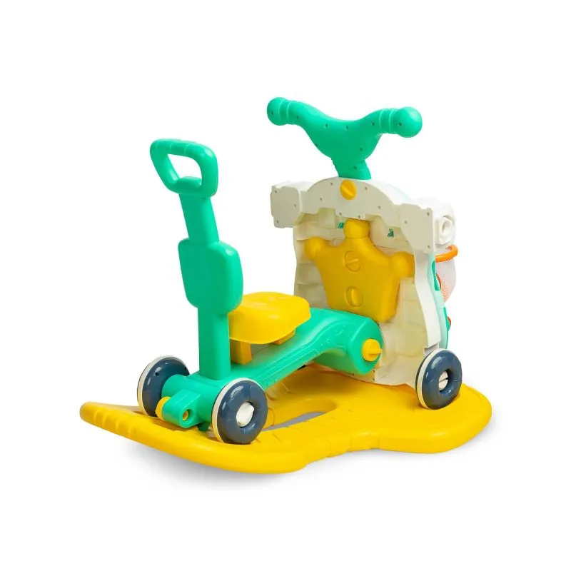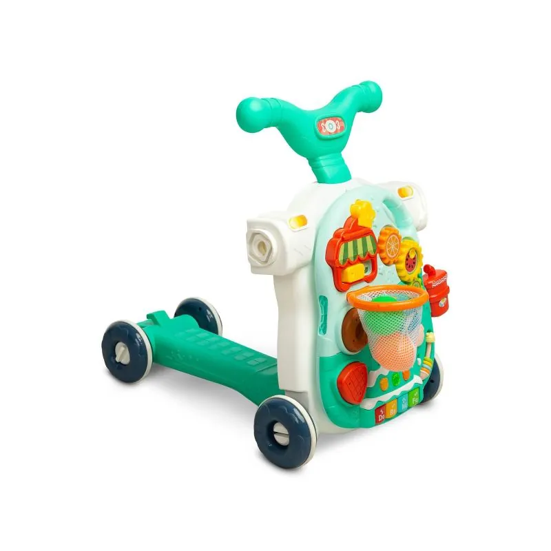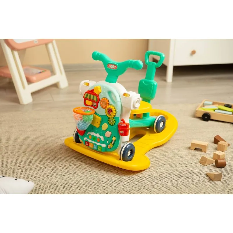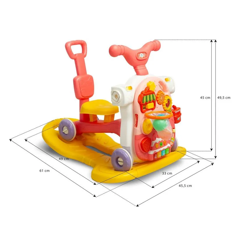Daudzveidīgas lietošanas iespējas, krāsaini elementi un muzikālais panelis ļaus mazulim spēlēties stundām ilgi. Lai bērns gūtu pēc iespējas vairāk pieredzes, rotaļlietu var salocīt 5 dažādos veidos:staigulis, skrejritenis, šūpojošs transportlīdzeklis, stumjama mašīnīte,galds. Rotaļlieta piemērota bērniem no 12 mēnešu vecuma.Viegla montāžaDaudz interesantu melodiju, kas patiks bērnamTas palīdz attīstīt bērna koncentrēšanos un uzmanībuVeicina bērnu roku attīstībuIzmēri: 61 x 45,5 x 49,5 cm
