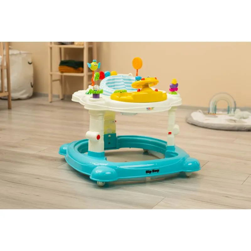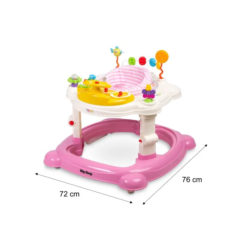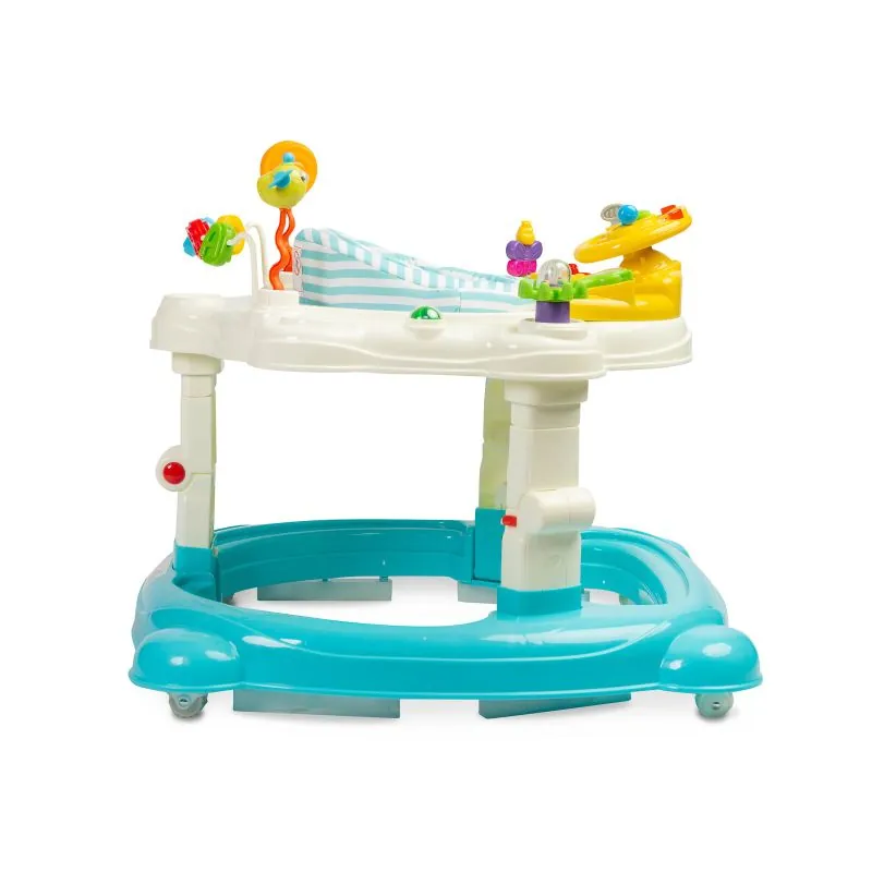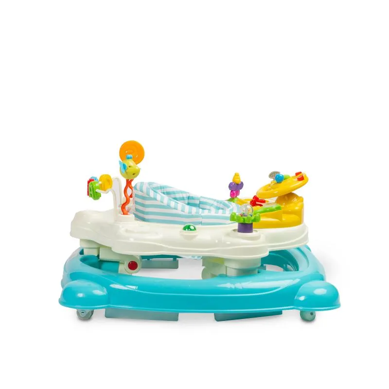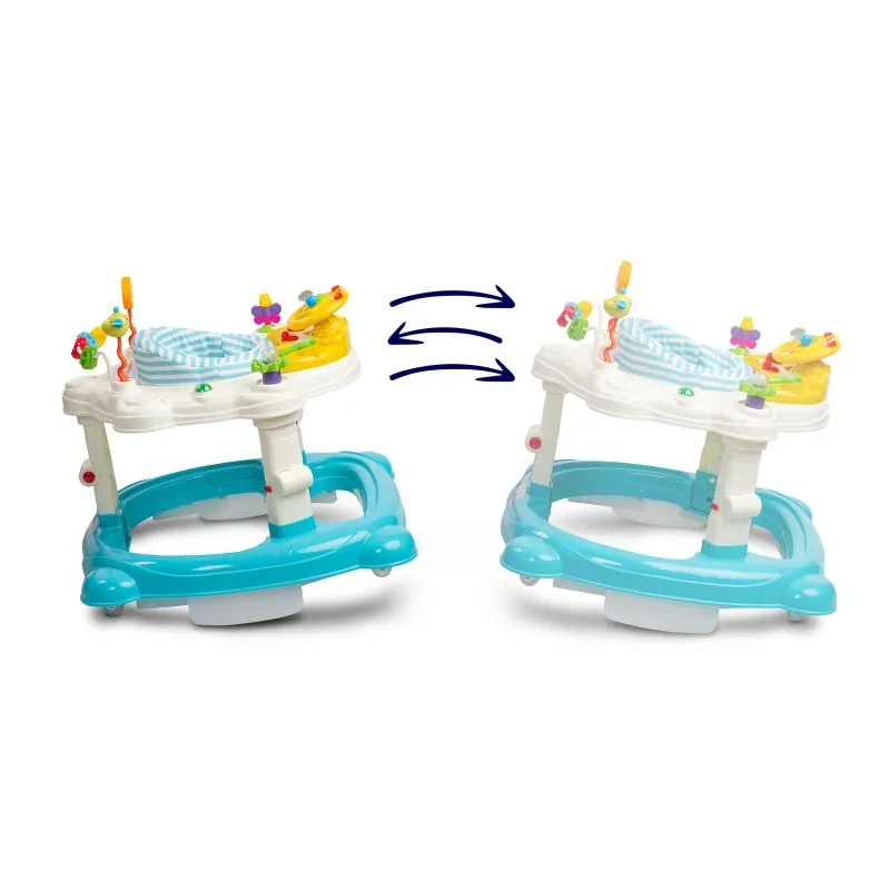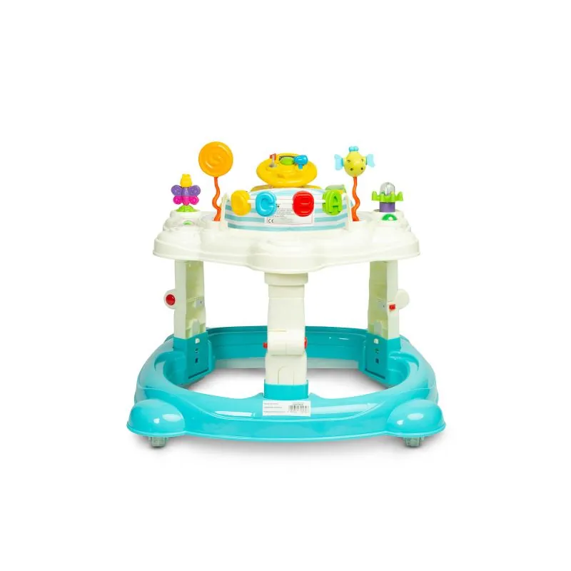 Staigulis izgatavots no augstas kvalitātes plastmasas. Ar 360 grādu rotējošu sēdekli un rotaļīgu izglītojošu galdiņu