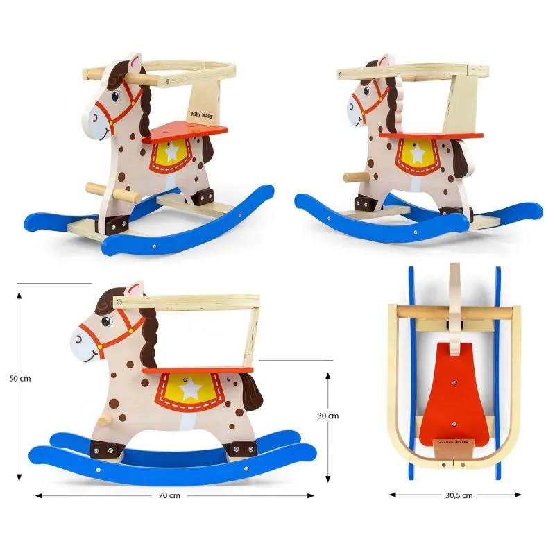 Izturīgs koks un krāsaini dekorēts;Kāju balsts;Pilnībā aizsargāts no visām pusēm pret izkrišanu;Augstums līdz sēdeklim: 30 cm.;Šūpuļzirdziņa augstums: 50 cm.;Šūpuļzirdziņa garums: 70 cm.;Šūpuļzirdziņa platums: 30,5 cm.;