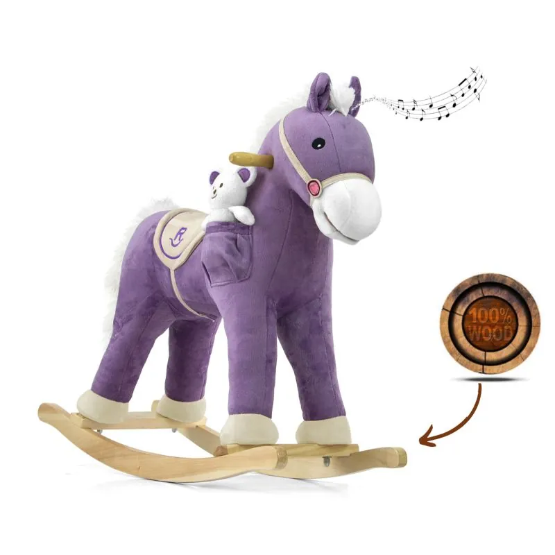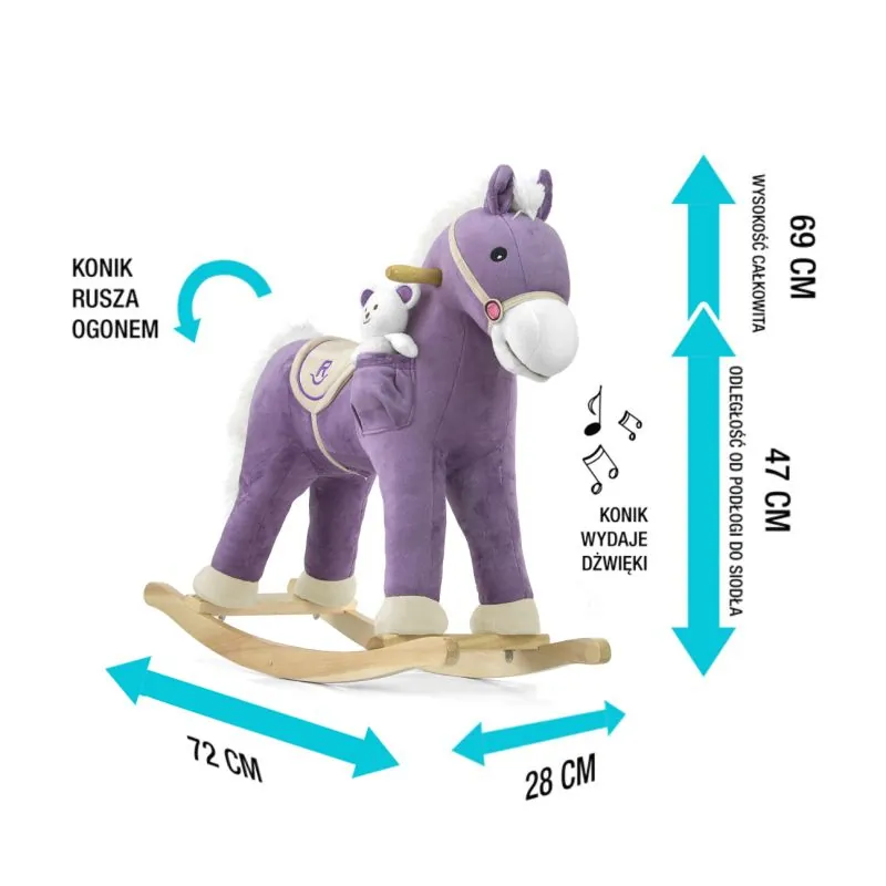 Minkštas supamasis arkliukas - apie tokį žaislą svajoja kiekvienas vaikas, be tradicinės siūbavimo funkcijos jis turi daug papildomų linksmų funkcijų;