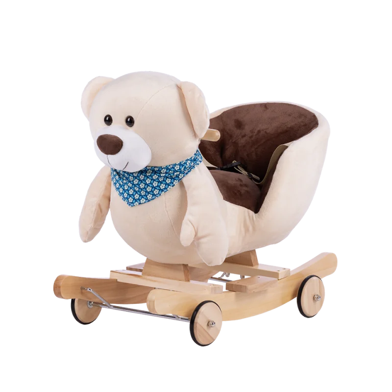 Pūkains šūpojošs rotaļlieta Jūsu mazulim ar nolokāmiem riteņiem. Paredzēts bērniem no 1 gada vecuma.