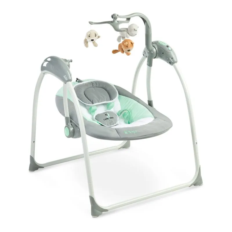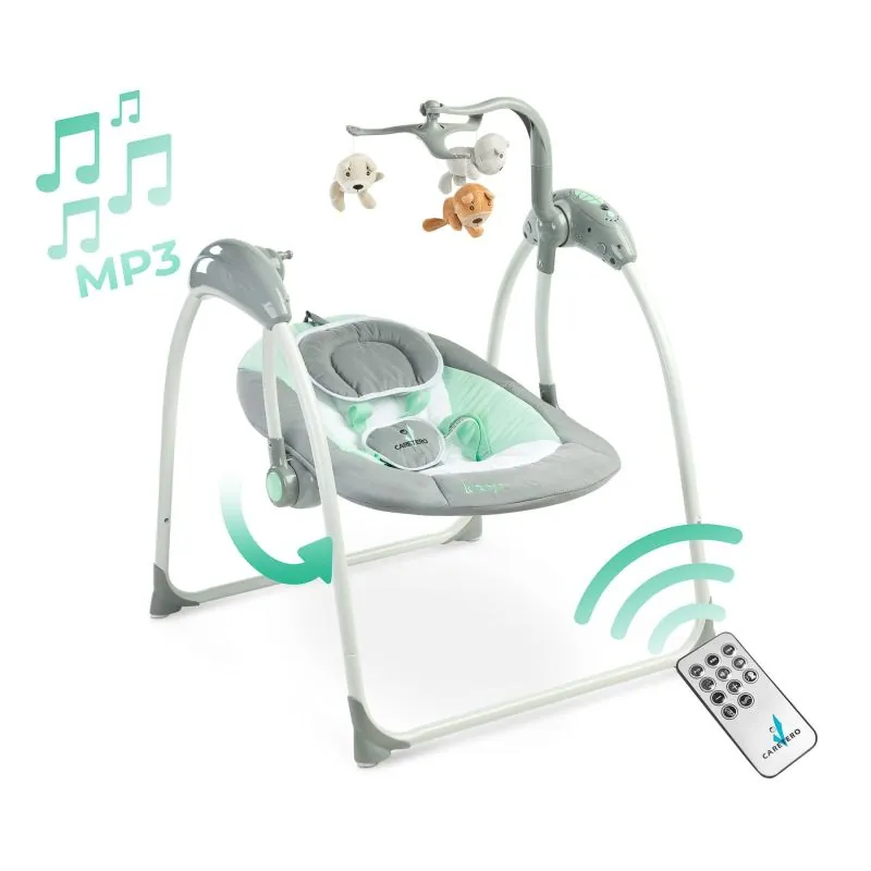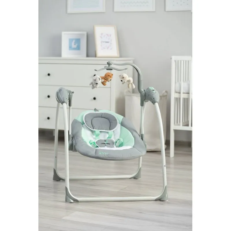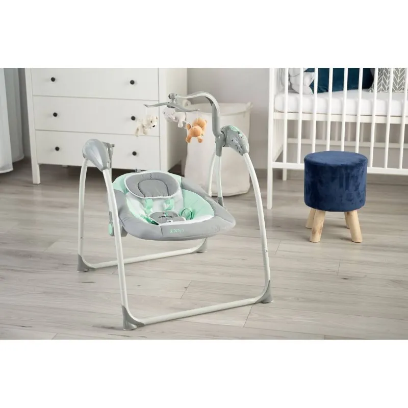 Ātri un viegli salokāms;Izturīgs un stabils rāmis;5 drošības jostas;5 šūpošanās ātrumi;Iespēja vadīt attālināti;Karuselis ar jautrām un spilgtām plīša rotaļlietām;Mierīgas pasteļkrāsas;Nepieciešamas 4xAA 1.5V baterijas.