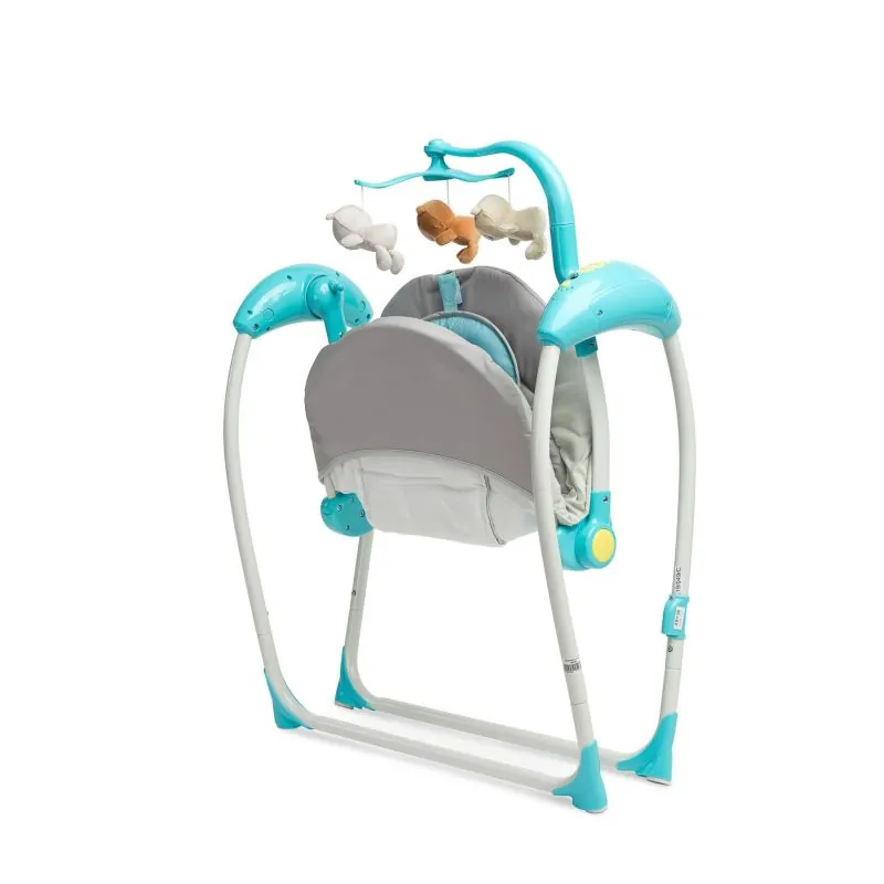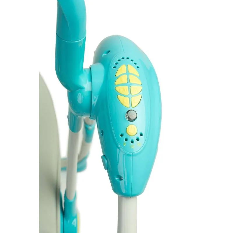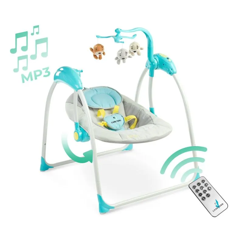 Ātri un viegli salokāms;Izturīgs un stabils rāmis;5 drošības jostas;5 šūpošanās ātrumi;Iespēja vadīt attālināti;Karuselis ar jautrām un košām plīša rotaļlietām;Mierīgas pasteļkrāsas;Nepieciešamas 4xAA 1.5V baterijas.