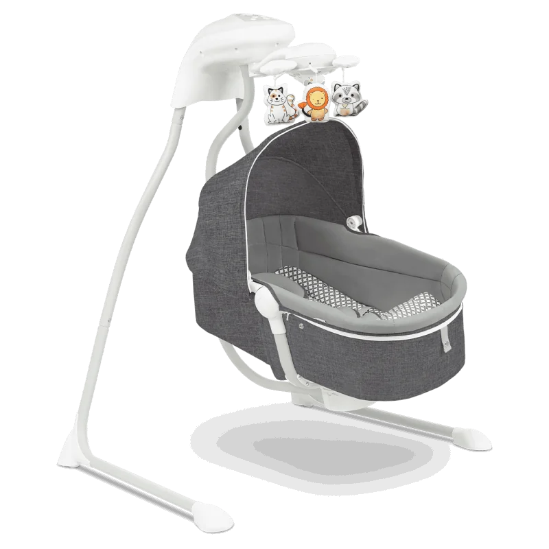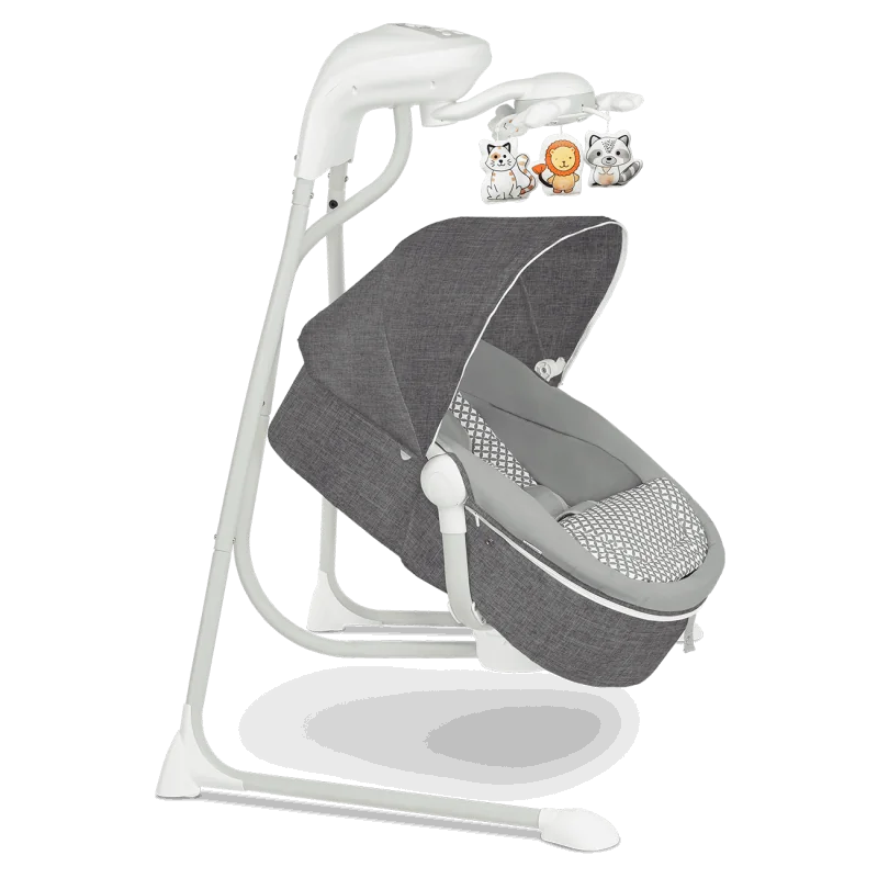 Šūpoles ar rotaļlietām un projektoru, kas izstaro 7 krāsu gaismas.Papildus 12 iebūvētām Henny melodijām un dabas skaņām, varat klausīties iecienītās dziesmas MP3 formātā, pievienojot atskaņotāju ar USB spraudni.3 pakāpju atzveltnes regulēšana, lai nodrošinātu pareizu bērna pozīciju miegā un spēlē.Integrēts taimeris ļauj iestatīt šūpošanās laiku uz 8, 15 un 30 minūtēm. Tāpat regulēt tā ātrumu atbilstoši bērna svaram.Pateicoties 3 pakāpju regulējamai atzveltnei, mīksto šūpuli var viegli pārvērst dziļā sēdeklī.Henny automātiski pielāgo šūpošanās diapazonu atbilstoši bērna svaram.Regulējamas 5 punktu siksnas nodrošinās drošību.Var izmantot no pirmajām bērna dzīves dienām.Sēdekļa pagriešana par 90°.Īpaši kluss mehānisms nodrošina vienmērīgu un maigu šūpošanos.Izturīgs tērauda rāmis garantē produkta stabilitāti.Tradicionālā šūpuļa struktūra (KangooComfort) palielina bērna komforta sajūtu.5 punktu siksnas nodrošina mazuļa drošību.Henny modelim tika veikta vairāku posmu pārbaude un testi SGS sertifikācijas laboratorijā.Tas atbilst stingrām Eiropas drošības standarta EN 12790 prasībām.Šūpulis komplektēts ar moskītu tīklu.Lietošana līdz 9kg.Barošana: baterijas vai tīkls,bateriju tips un skaits: 4 x R20 (D),barošanas tips - 5,8V 800mA, baterijas nav iekļautasProdukta izmēri: 118,5 x 102 x 89,5 cm__ETS_EMBED_MQ==__