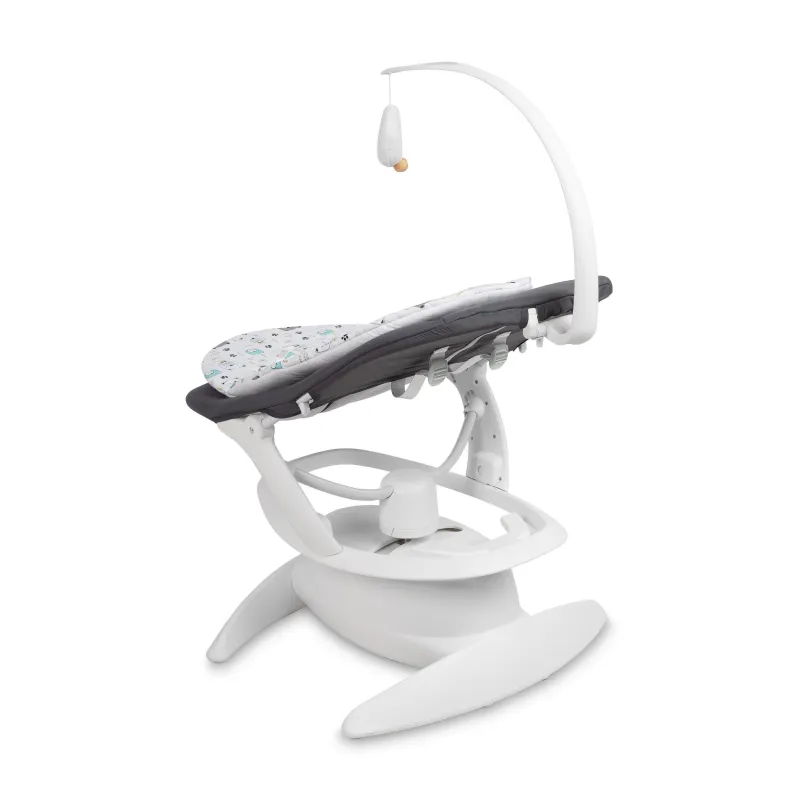 360° grozāms sēdeklis ļauj mainīt šūpošanās virzienu un uzturēt acu kontaktu ar mazuli;
