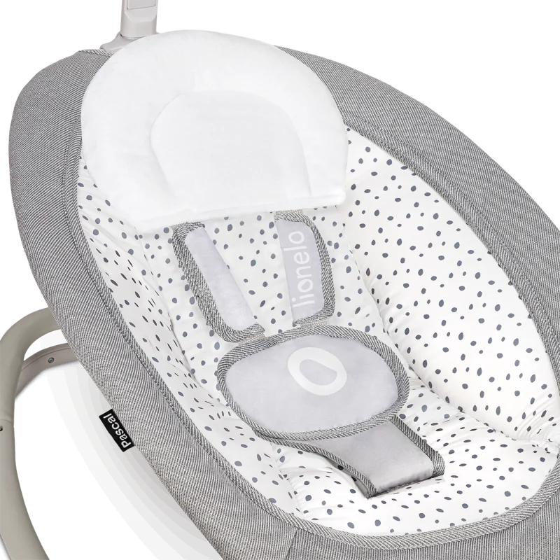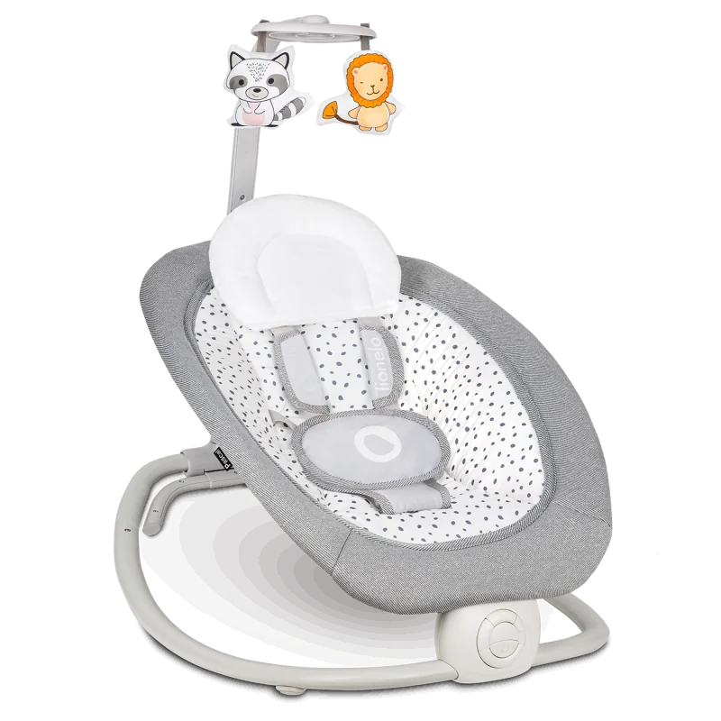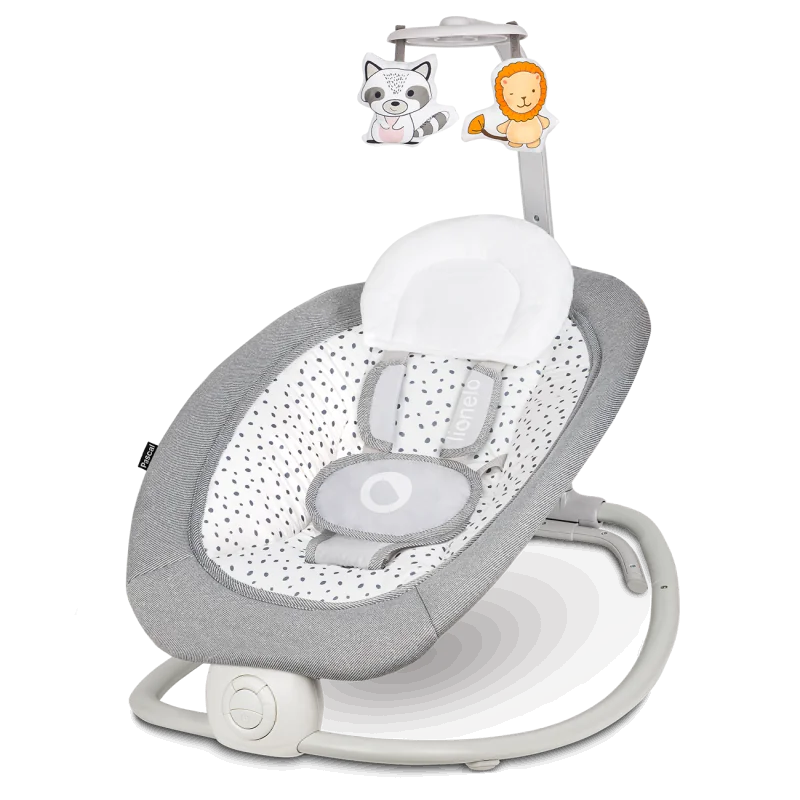 Ērta guļamzona ar galvas balstu nodrošina pareizu mazuļa pozīciju;Izturīga, izturīga un moderna metāla konstrukcija;5 melodijas un 4 skaņas līmeņi;Automātiski pielāgo šūpošanās diapazonu atbilstoši mazuļa svaram;Noņemams pārvalks, ko var mazgāt veļas mašīnā;4 līmeņu regulējams atzveltnes augstums;Maksimālais bērna svars: 9 kg.;Viegls salokāms un aizņem maz vietas;