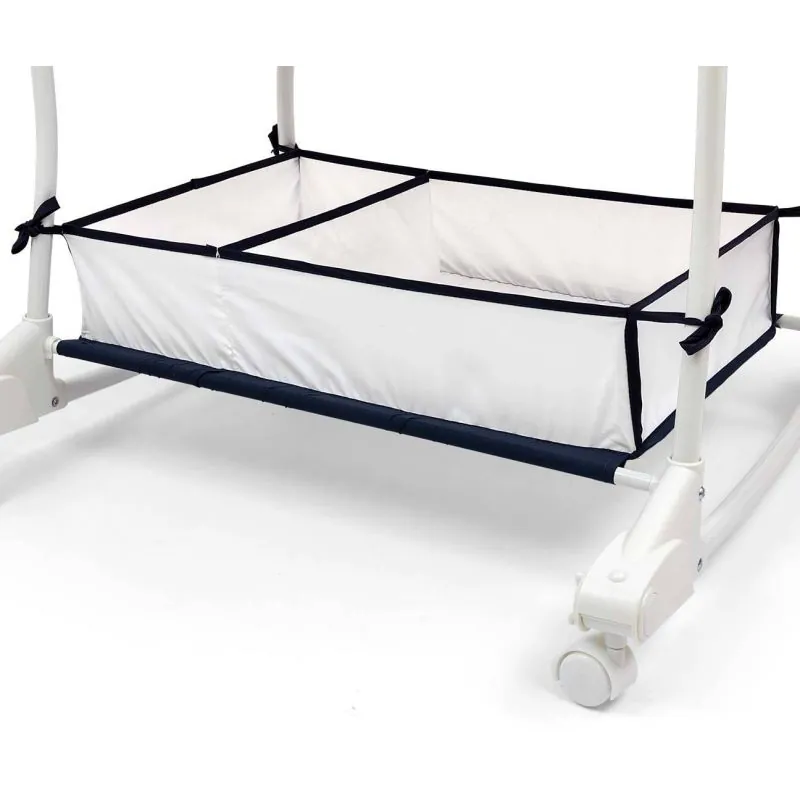 Šūpuļa funkcija;Gultas funkcija;Mīksts matracis;Stepēts iekšējais oderējums;Ērti salokāms;Noņemams pārsegs;2 mīkstas rotaļlietas, kas karājas zem baldahīna, ar iespēju noņemt;2 tīkliņi sānos;4 riteņi ar bloķēšanu;Noņemams pārvalks mazgāšanai;Stabils;Metāla rāmis;Šūpošanas funkcija, nolokot riteņus;Neslīdošas kājas;Ērta soma zem šūpulīša;Līdz 6 mēnešu vecumam vai 9 kg.