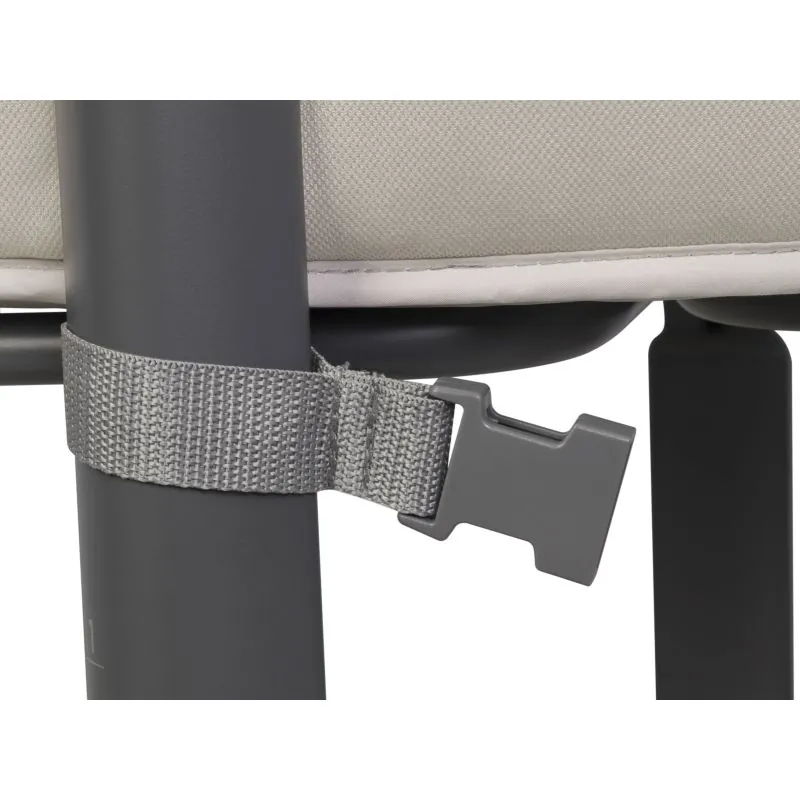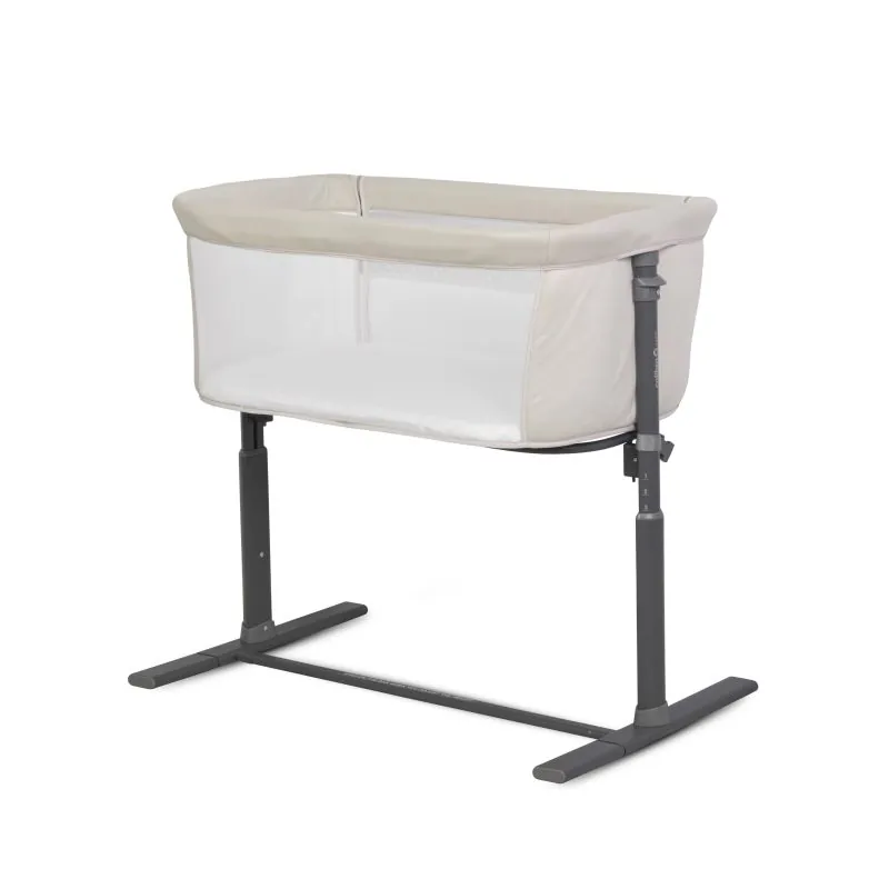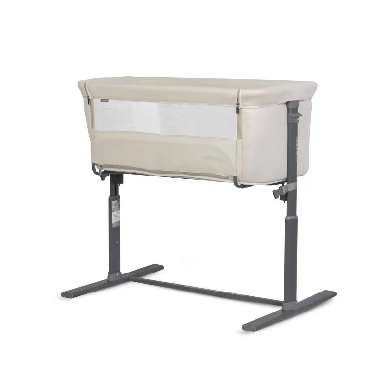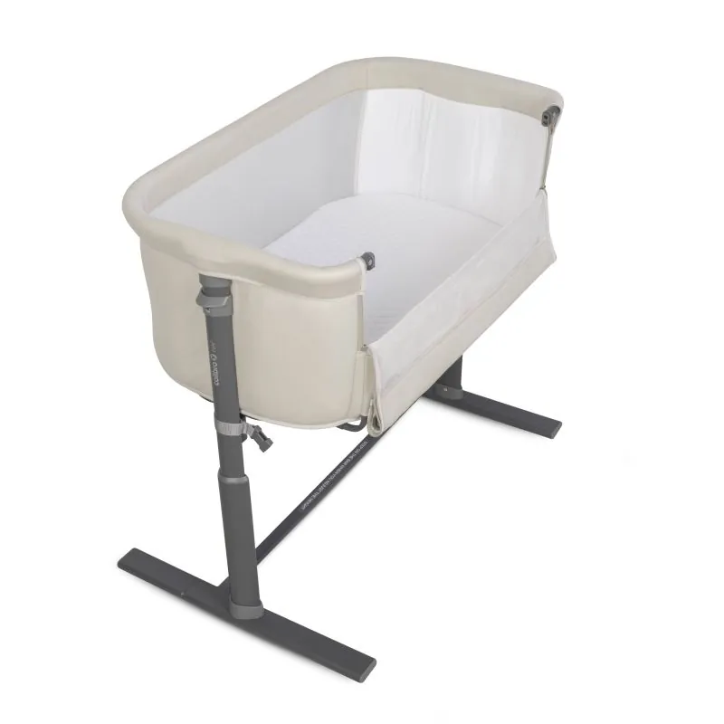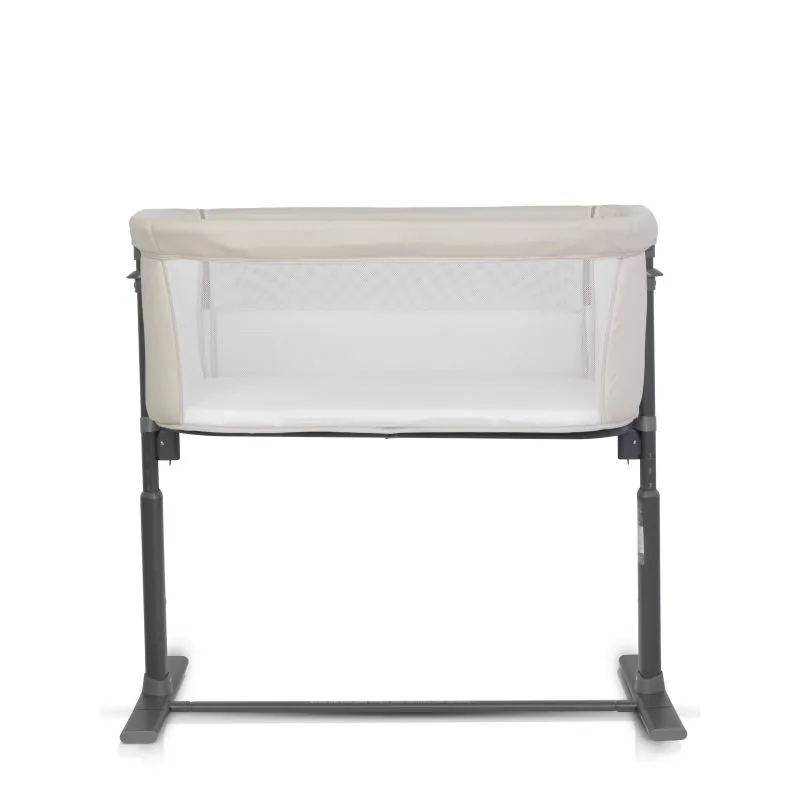 Pateicoties tam, bērns var droši un ērti pavadīt nakti kopā ar vecākiem. Sānu gulta/šūpulis lieliski pieguļ vecāku gultai, pateicoties siksnu sistēmai un pat 9 augstuma iestatījumiem. Gultai ir viena atverama puse, kas ļauj viegli un ērti piekļūt bērnam. Īpašais 15 cm augstais bortelis neļauj bērnam uzkāpt uz vecāku matrača. Tādējādi bērns ir drošībā.