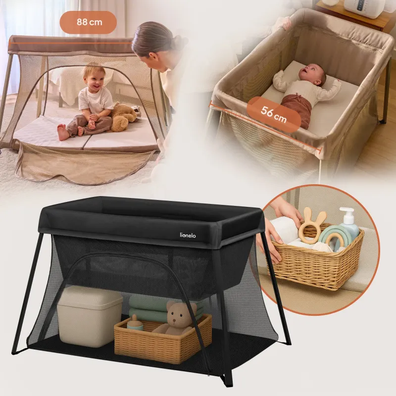 „Alice“ – tas ir kompakts 3in1 šūpulis, kas aizņem ļoti maz vietas un ir lieliski piemērots pat mazākām telpām. Atkarībā no jūsu vajadzībām, to var izmantot kā bērnu gultiņu, ceļojumu gultiņu vai spēļu manēžu. Paņemiet to līdzi atvaļinājumā, jo to ir viegli salocīt.